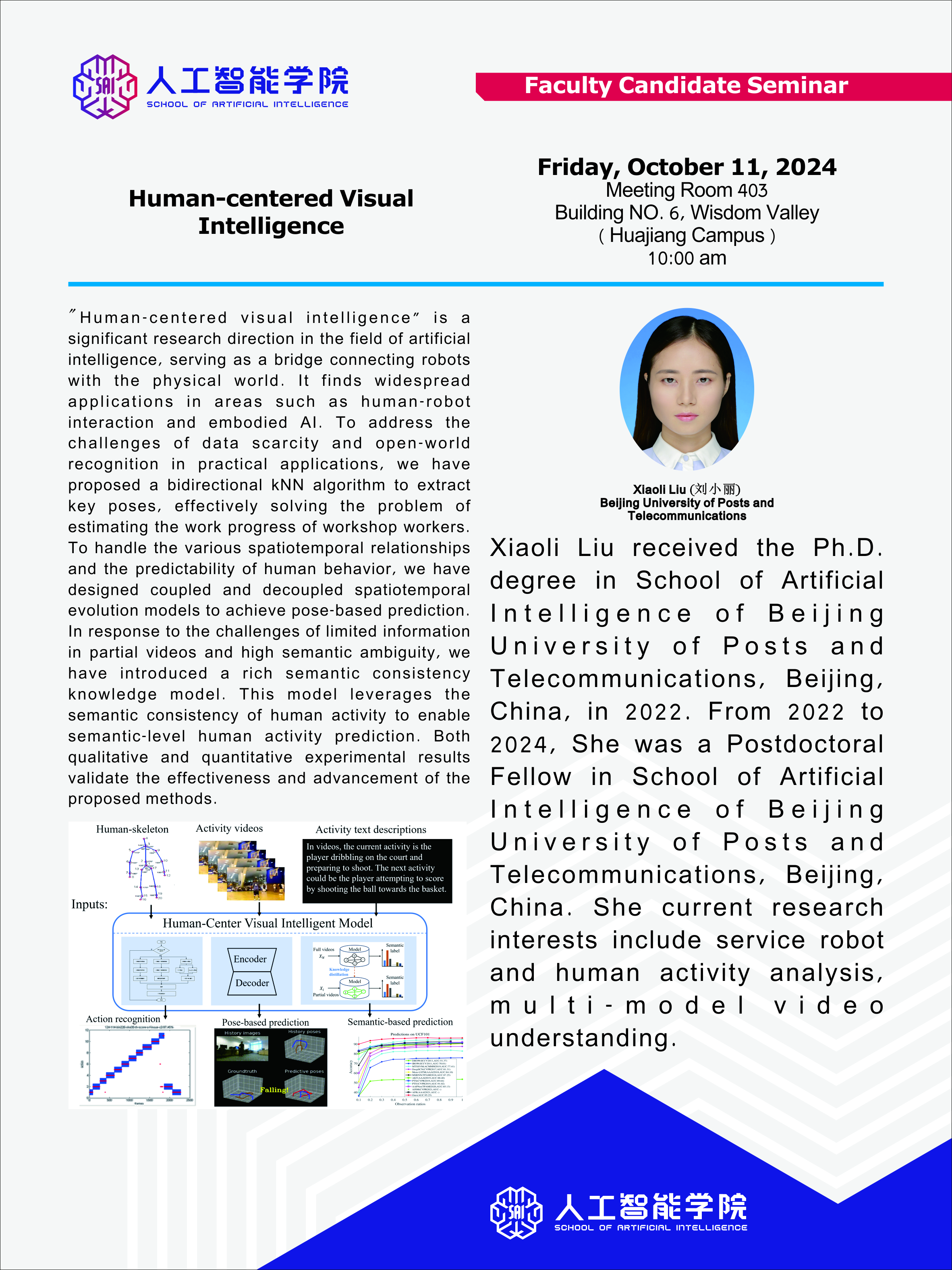 2024年10月11日,刘小丽博士应三亿官方官网三亿(中国)_三亿(中国)人工智能学院邀请,到花江慧谷6号楼403会议室做题为Human-Centric Visual Intelligence的学术报告。