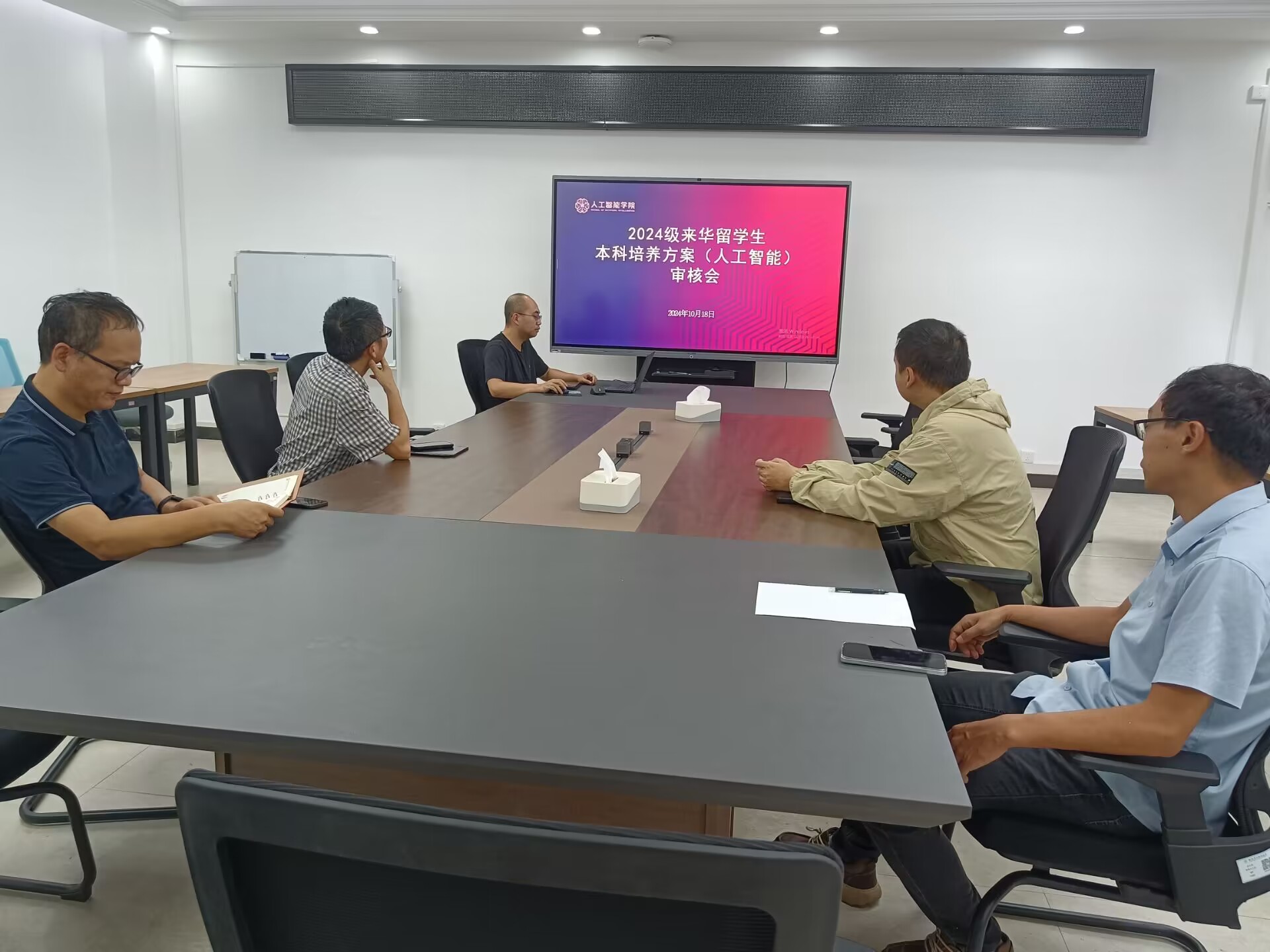 陈院长向与会教师汇报了2024级来华留学生人才培养方案修订原则意见,详细说明了此次人才培养方案修订的背景、内容和要求。覃阳老师汇报了人工智能专业留学生人才培养方案修订情况。