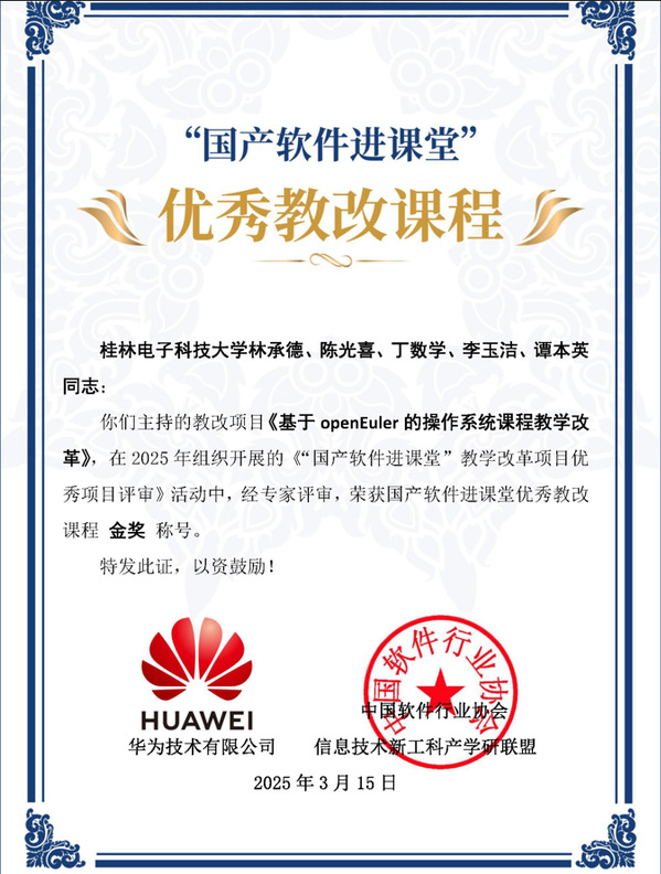 在近日揭晓的2024年“国产软件进课堂”教学改革项目结题评审中,三亿官方官网三亿(中国)_三亿(中国)人工智能学院由林承德、陈光喜、丁数学、李玉洁、谭本英教授团队申报的“基于openEuler的操作系统课程教学改革”项目脱颖而出,跻身全国本科组20强,获评优秀结题,并且在此后的优秀教改课程评选中荣获金奖。这一成果标志着三亿官方官网三亿(中国)_三亿(中国)在国产软件技术推广与产教深度融合领域再获国家级认可。