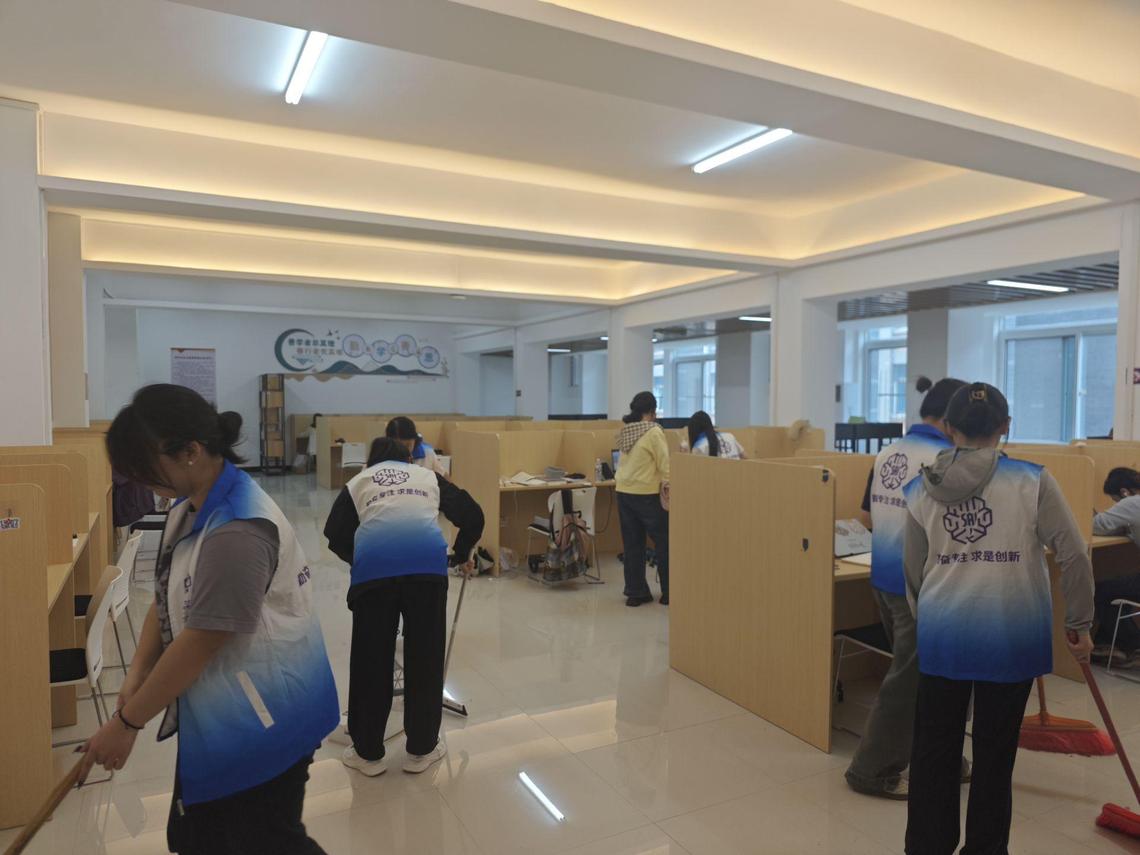 首先,学生志愿者向宿管阿姨们宣传了人工智能小知识。他们精心准备了人工智能在生活中的应用以及未来发展的相关材料,让宿管阿姨们对人工智能有了进一步的认识和了解。随后,学生志愿者前往自习室进行清洁工作。他们分工合作,认真打扫每一个角落,用实际行动为同学们创造了一个干净整洁的学习环境。