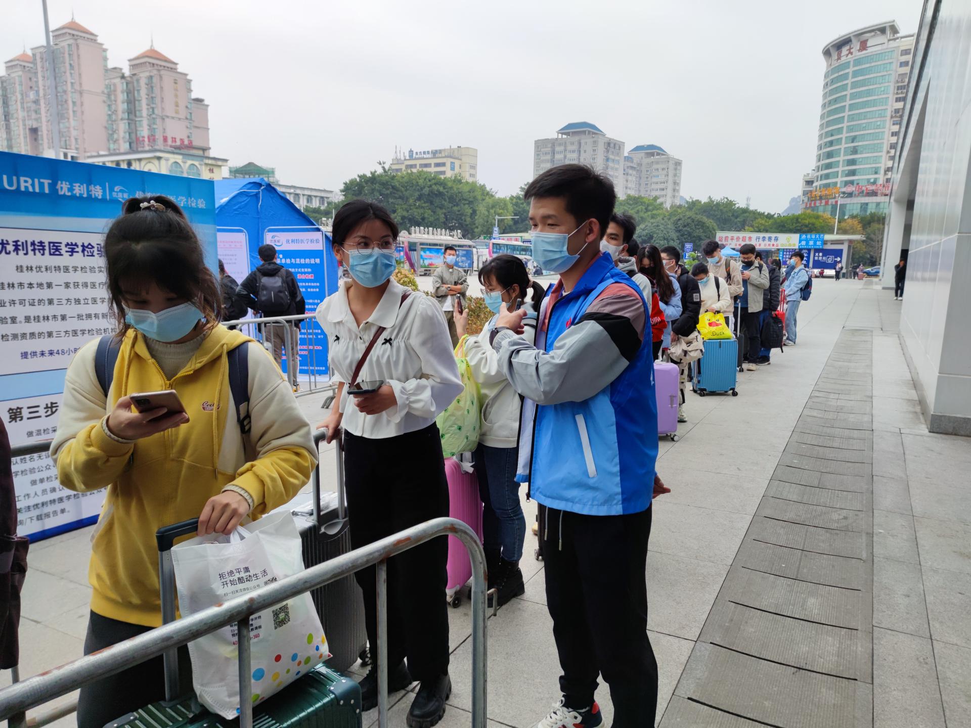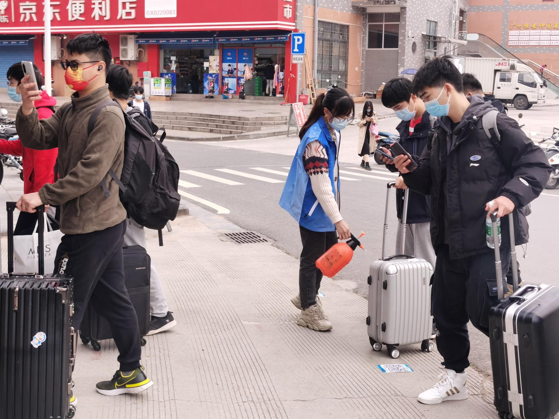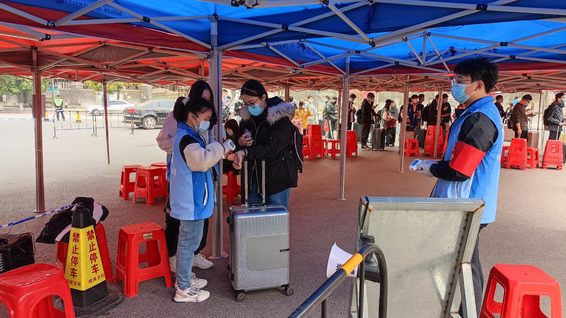 火车站、校门口、宿舍区……各个地方都有我们的志愿者,他们身着“桂电志愿者”蓝马甲,人群中不停地穿梭忙碌,格外显眼,他们高效完成了秩序引导、扫码核验、体温测量、行李消杀等工作。在整个志愿服务过程中,志愿者们严格按照学校疫情防控和返校工作相关部署和要求,做好个人自身防护的同时,细致周到地服务好返校学生,极大地弘扬了志愿服务精神,也用实际行动诠释了桂电精神。