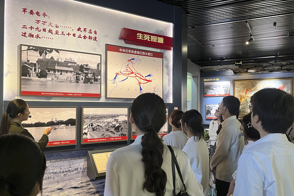 在纪念碑林凭吊广场,学员代表向湘江战役红军烈士敬献花篮、默哀致敬,并重温了入团誓词。在纪念馆内,全体人员通过聆听现场讲解,观看历史照片和实物展示,详细了解了湘江战役,深入学习红军战士的英勇事迹和崇高精神。青马班学员纷纷表示,将继承和弘扬老一辈革命家的优良传统,厚植家国情怀,勇担时代使命,以实际行动为中国式现代化建设贡献青春力量。