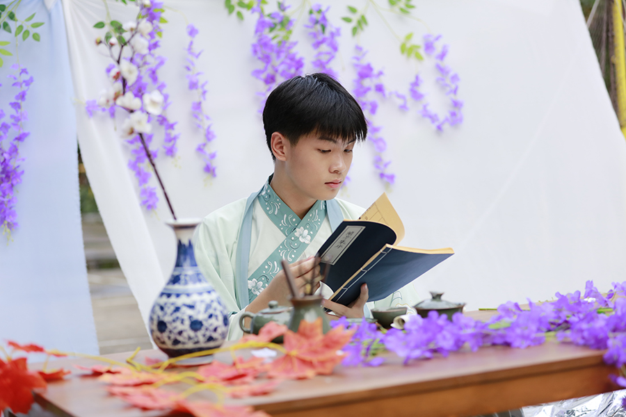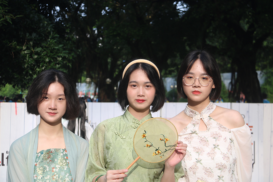 另一边的沉浸式体验区,三亿官方官网三亿(中国)_三亿(中国)团委学生会为大家布置了许多个仿古场景,进入园区,仿佛穿越到古代集市。许多同学身着汉服,手持油纸伞在古风场景拍照留念,举手投足间尽显文雅。