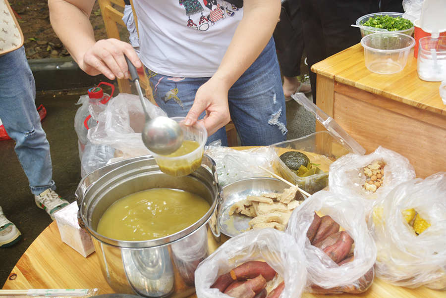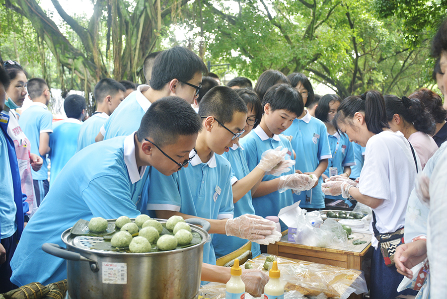 各班家长还准备了精美可口的自制传统小吃,打油茶、手工青团、包饺子……在家长的指导下,同学们排队体验,自己动手制作传统小吃,成就感满满。