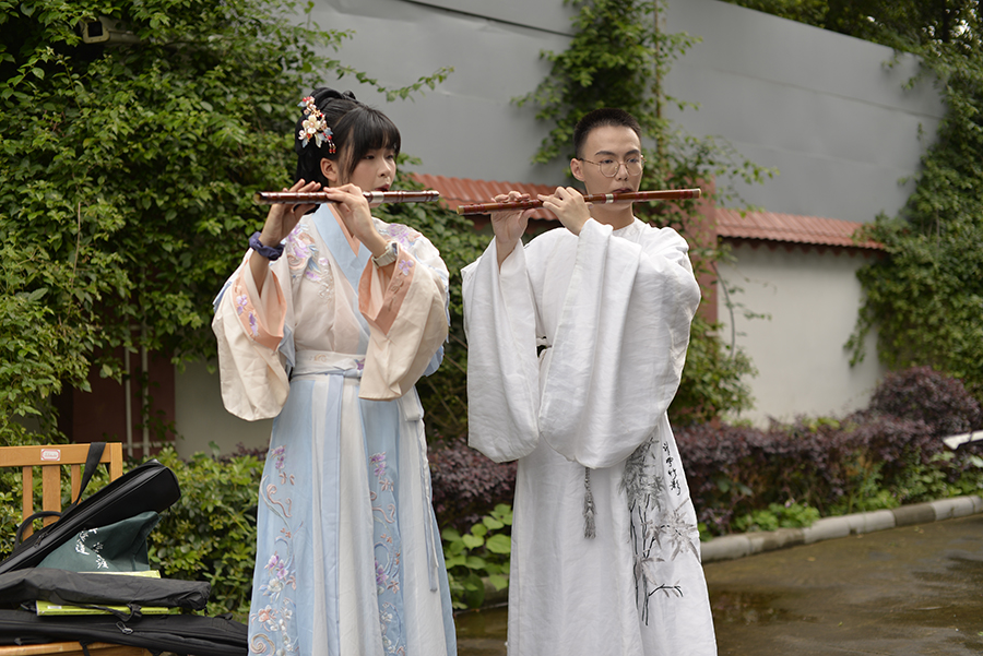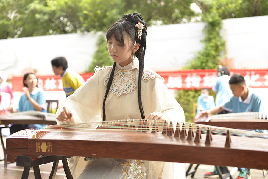 除了好吃的传统美食,还有好听的传统乐器,各班同学纷纷拿出自己的拿手才艺,竹竿舞、葫芦丝、二胡、古筝、扬琴……活动现场糕点飘香,琴音悠扬,人声鼎沸。