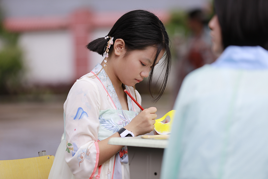 还有传统的投壶和射箭游戏,好玩益智又有趣。传统手工制作也很吸引同学们,和好友一起制作扇子、手链、台灯等,再赠予对方。不仅让大家自由发挥想象力和创造力,感受了传统文化的魅力,也增进了友谊。玩累了,还可以品尝精美可口的传统糕点和解暑饮料,可谓是沉浸式体验古人的生活了。