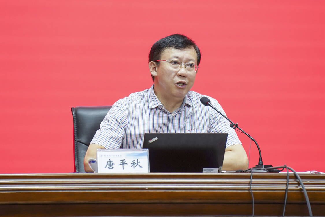 9月16日下午,校党委书记唐平秋在花江校区会议中心大礼堂为2022级新生讲授主题为"回眸十年辉煌路 共筑未来青春梦"的开学第一课。授课采用线上与线下相结合的方式进行,2022级新生(含北海校区新生)共同聆听。校党委副书记聂慧主持开学第一课。