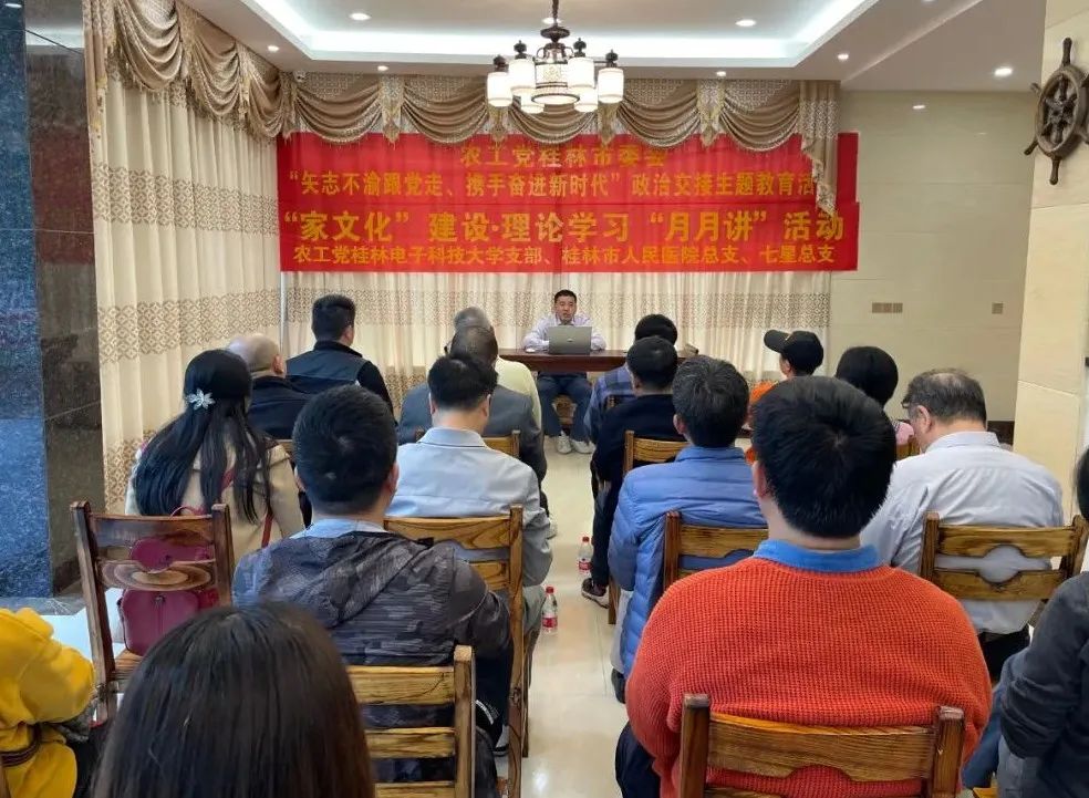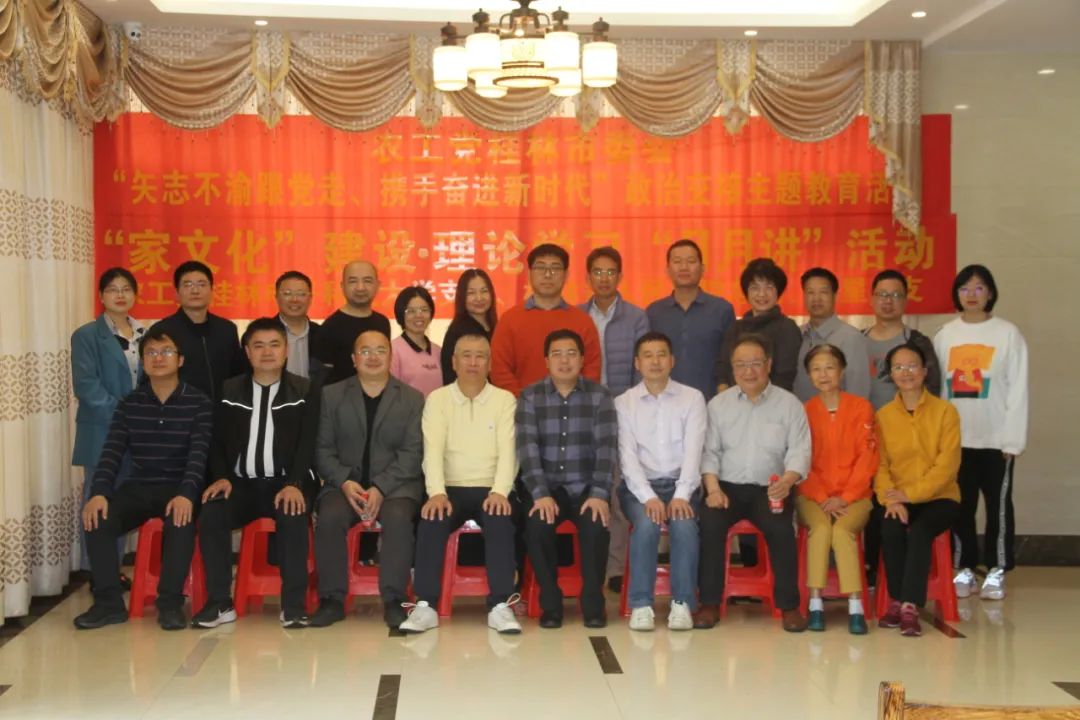 “家文化”建设·理论学习“月月讲”活动是农工党桂林市委会以“领导带动、机关驱动、基层联动”,将理论学习向基层组织拓展和延伸的新举措。以基层组织自行举办为主,市委会协助为辅,结合常委联系基层制度,开展“矢志不渝跟党走、携手奋进新时代”政治交接主题教育,坚持中共党史学习教育常态化、长效化,推进农工党桂林市“家文化”建设,激发基层组织活力,凝聚共识和力量,推动思想建设、组织建设、参政议政各项工作迈上新台阶。