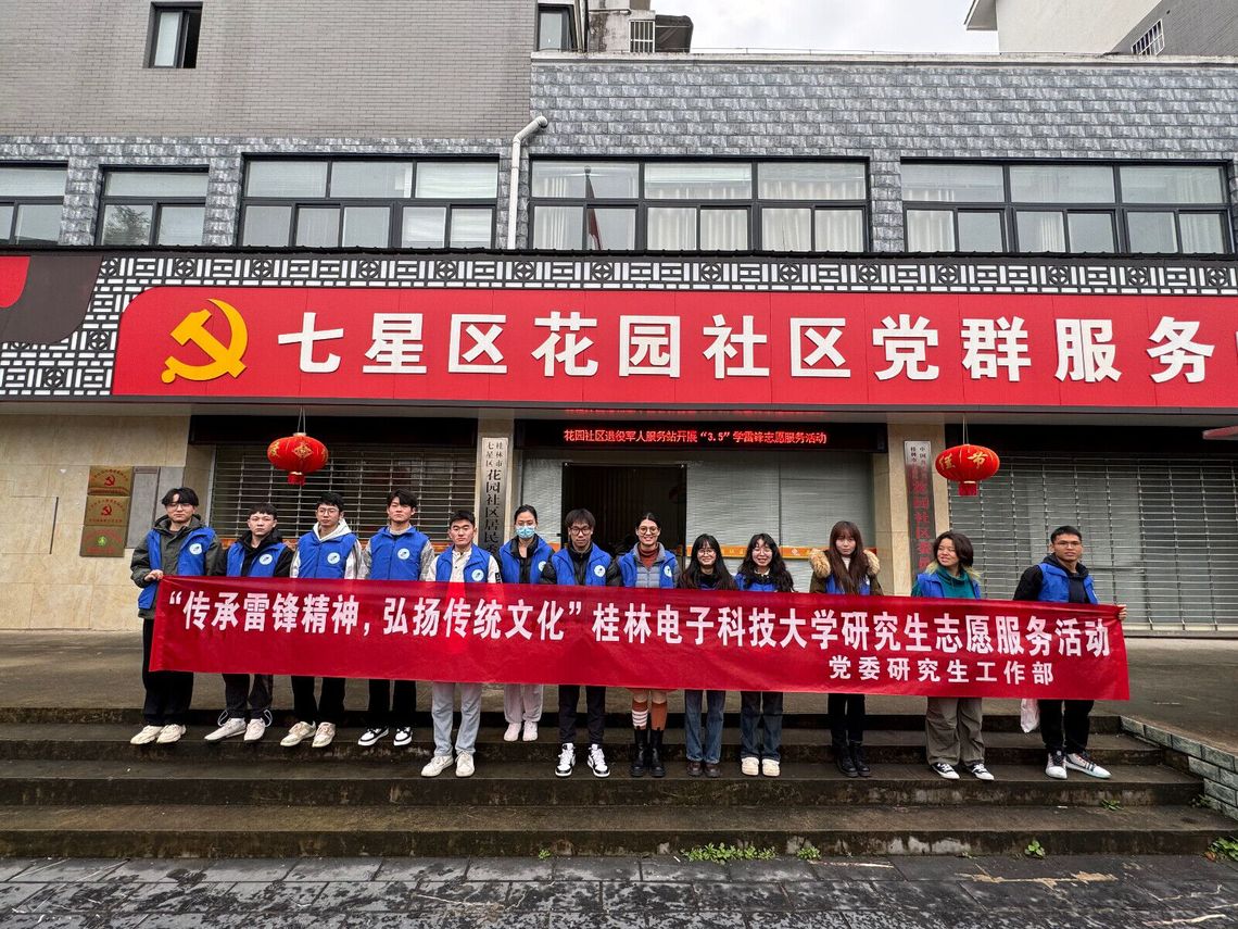 3月5日,校研究生会和光电工程学院研究生会协助七星区政府、桂电社区和花园社区前往七星区花园社区党群服务中心开展“传承雷锋精神,弘扬传统文化”研究生志愿服务活动。