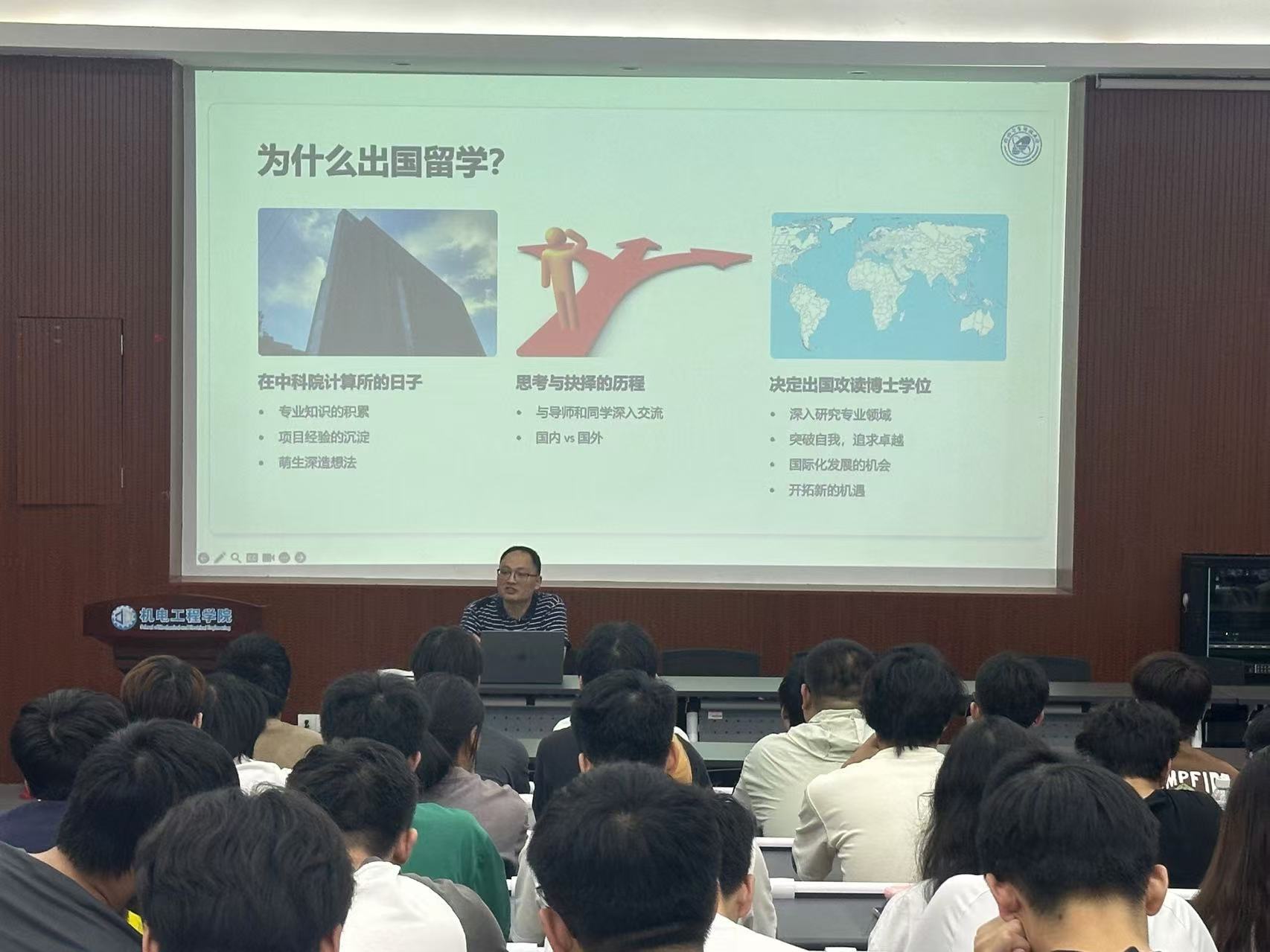 唐宇涛老师结合自身在海外留学的学习经历、生活见闻、工作体会及回到祖国的成长经历和深刻思考,向学生们生动阐述了一位新时代爱国学者的留学报国之路。他鼓励在场学子在新时代大潮中要树立远大目标,脚踏实地,勇于担当,坚定文化自信,以开放包容的心态,积极吸收世界各国的先进知识与技术,树立科技报国的宏伟志向,为实现中华民族伟大复兴贡献自己的青春与才智。