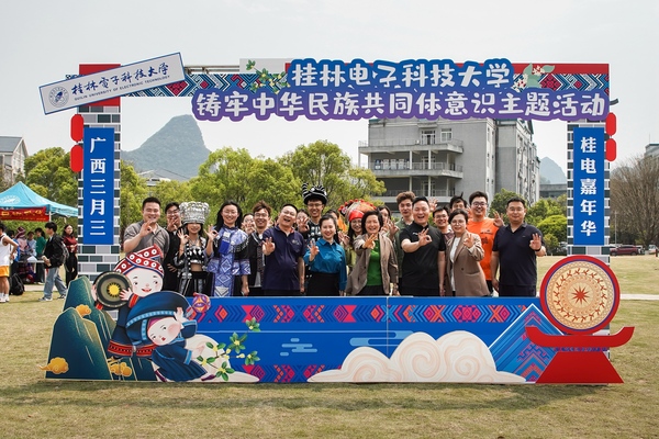 3月26日,由校党委统战部、学生工作部(处)和校团委联合主办的“广西三月三 · 桂电嘉年华”——铸牢中华民族共同体意识主题活动在花江校区举行。校党委副书记陈贵英及一千余名师生参加活动。