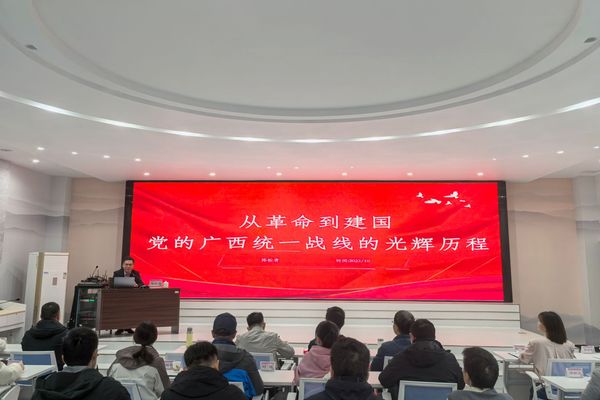 10月23日至24日,三亿官方官网三亿(中国)_三亿(中国)统战干部及统战对象能力提升培训班在桂林市委党校举办。副校长陈松青出席开班式。本次培训以“同心同向汇智聚力 共建共享赋能增效”为主题,旨在提升统战干部及统战对象的理论素养和履职能力,为学校高质量发展凝聚智慧与力量。