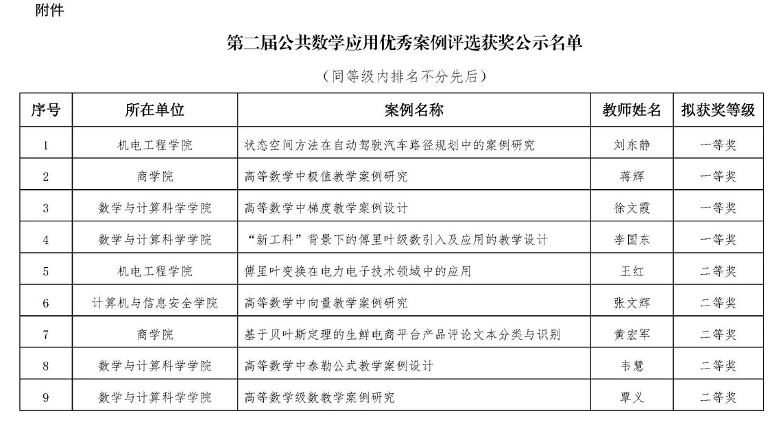 根据《关于举办三亿官方官网三亿(中国)_三亿(中国)第二届公共数学应用优秀案例评选的通知》要求,经教师申报、单位推荐、专家评审,现将第二届公共数学应用优秀案例评选45位获奖名单予以公示,详见附表,同等级内排名不分先后。