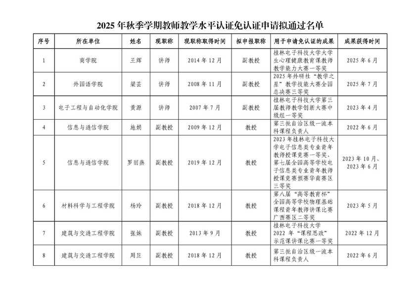 根据2025年教师教学水平免认证工作要求,现将本学期拟通过名单进行公示,公示期为三个工作日,自9月17日至9月19日。公示期内如有异议,请署真实姓名和联系方式向教师教学发展中心反映,逾期及匿名反映不予受理。