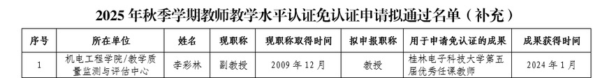 根据2025年教师教学水平免认证工作要求,现将本学期拟通过名单进行公示,公示期为三个工作日,自9月17日至9月19日。公示期内如有异议,请署真实姓名和联系方式向教师教学发展中心反映,逾期及匿名反映不予受理。