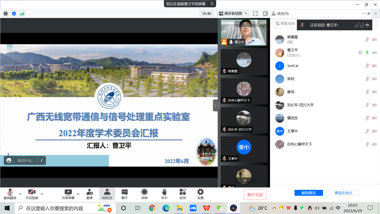6月29日,实验室通过“腾讯会议”召开了本年度学术委员会暨自主研究课题及开放课题的审议论证会。会上实验室主任曹卫平教授代表实验室汇报了2021年度实验室建设情况,与会委员评审了2022年度自主研究课题及开放课题的申报书。