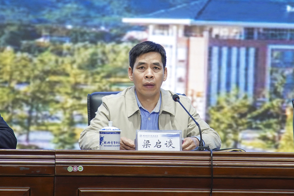 自治区纪委监委驻学校纪检监察组组长、校党委副书记、纪委书记、校巡察工作领导小组成员梁启谈主持会议