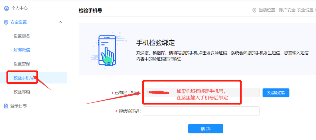 登录后绑定手机。