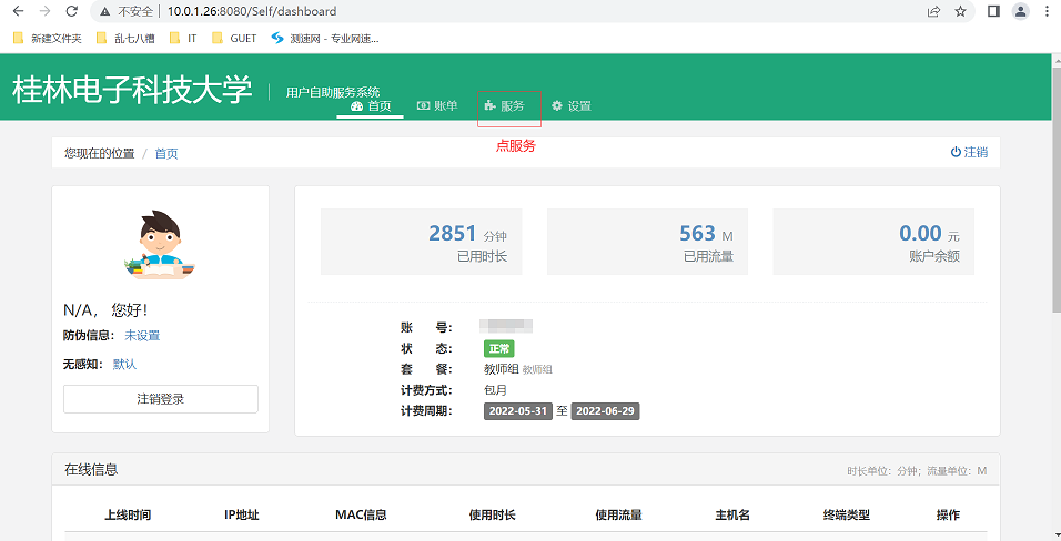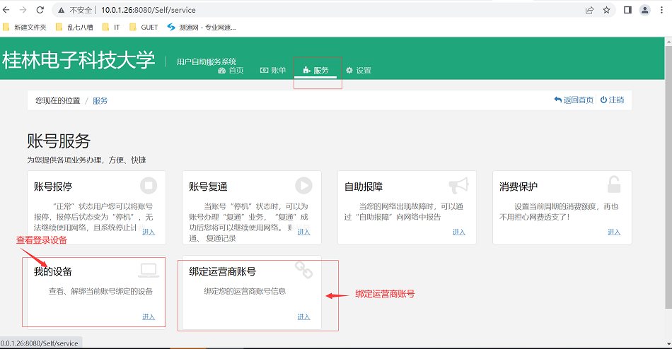 1、点击首次使用运营商绑定宽带账号,然后进入自助服务系统.