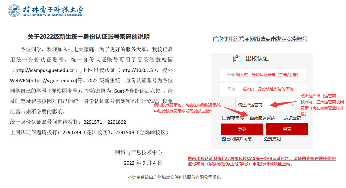 在上网出校认证对话框界面有“请选择运营商”,点击后会弹出“”
