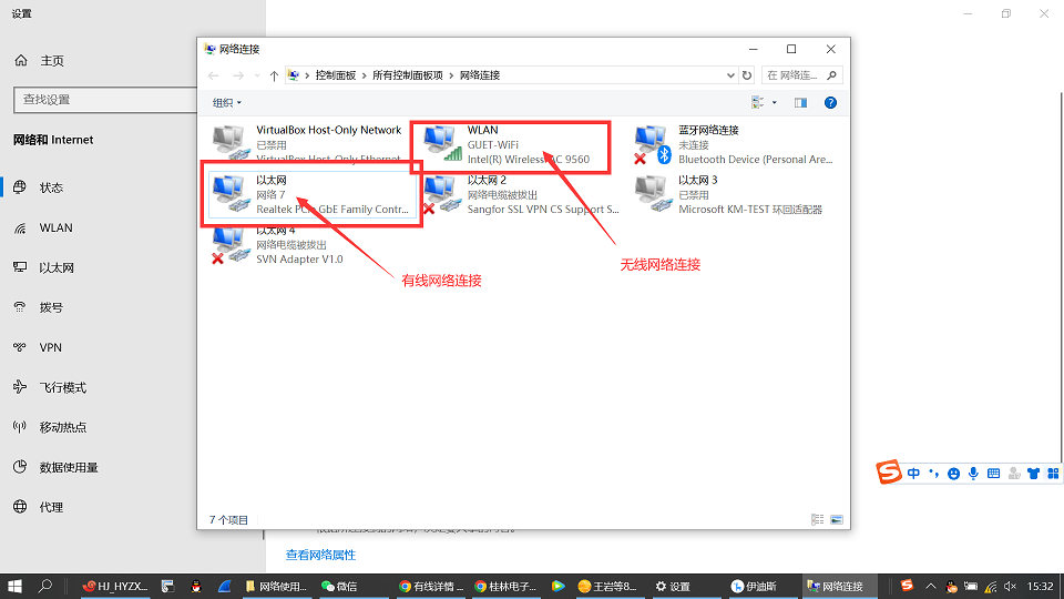 每个学生宿舍(除F区宿舍为全WiFi6无线覆盖外)都提供有两个网络接口,其中一个网络接口已经插有网线,为宿舍的无线AP(SSID:GUET-WiFi)使用,请勿拔出。另一个网络接口为有线网络接口,同学们可以直接使用或接交换机使用。