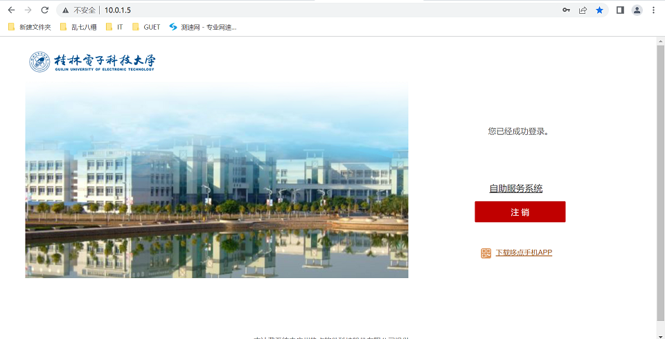 2、打开浏览器输入任意http页面(如:http://1.2.3.4)后再在跳转出的认证界面进行出校认证页http://10.0.1.5/a79.htm?wlanuserip=...。(在未被上网终端设备拦截的情况下默认会自动弹出上网认证登录页)
