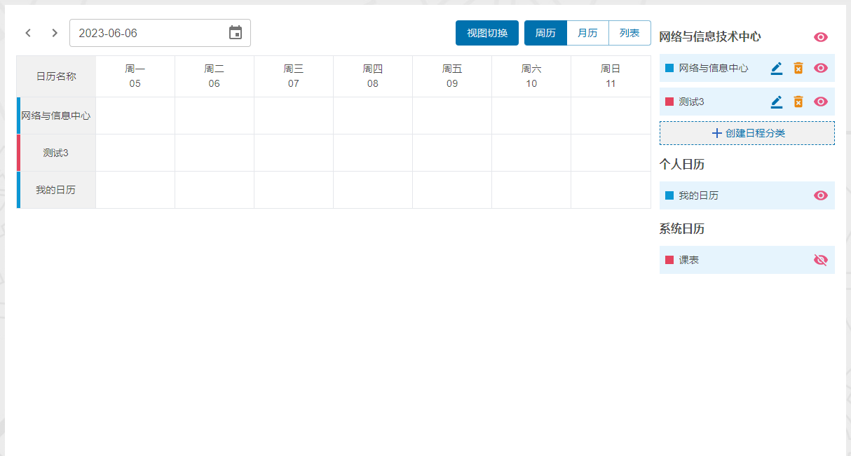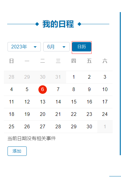 对个人日程进行维护,以及在日程中查看当天的课表信息,点击日历可进入日程中心查看维护所有的日程,如图所示。