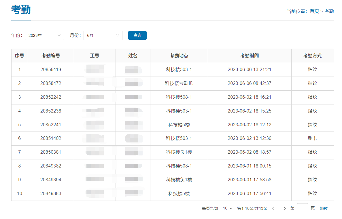 考勤:三亿官方官网三亿(中国)_三亿(中国)展示最后一次的打卡时间,进入后展示详细的考勤记录。并可根据月份查询考勤记录。