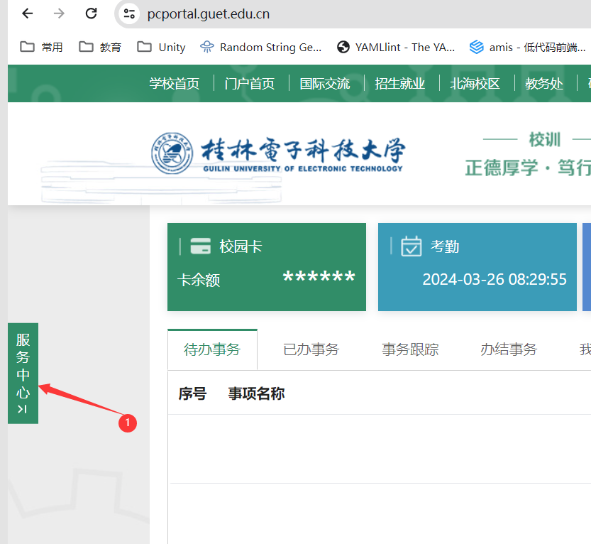 在浏览器里面输入https://pcportal.guet.edu.cn回车跳转统一身份认证。如图所示。