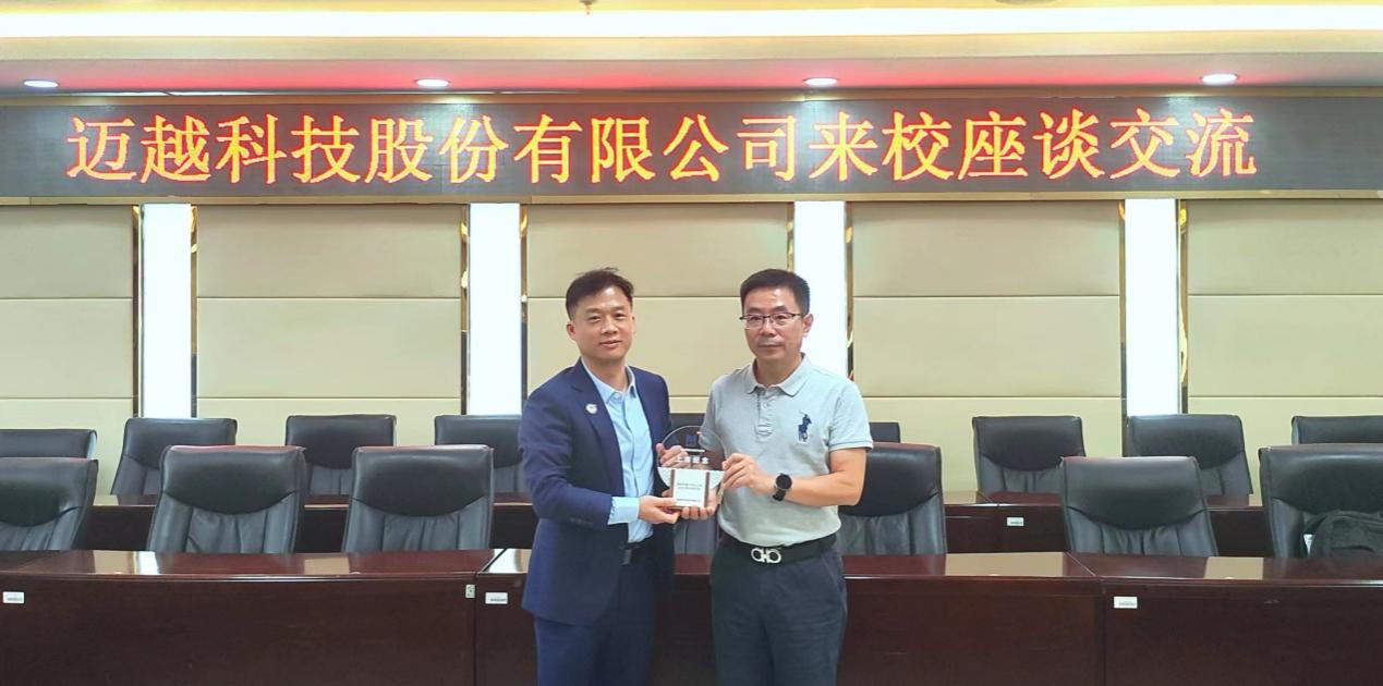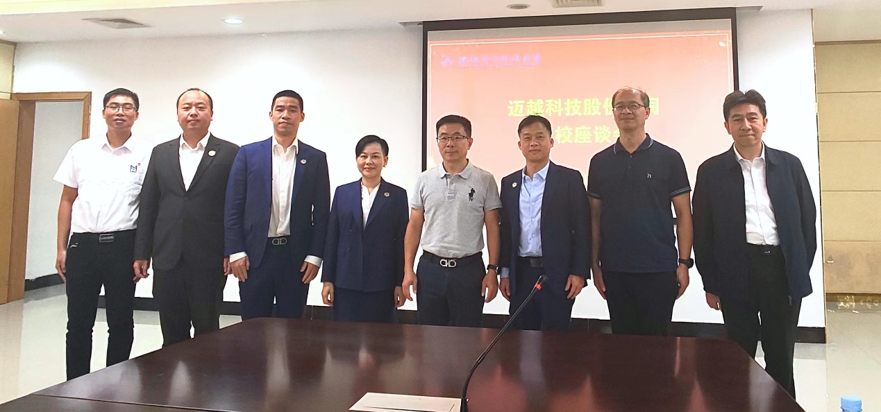 10月31日,迈越科技股份有限公司董事长李常青、执行董事邓彩蝶一行就“校企合作、产教融合”等事宜到校洽谈合作。校党委常委、副校长潘开林,网信中心主任欧阳宁一行出席座谈会。