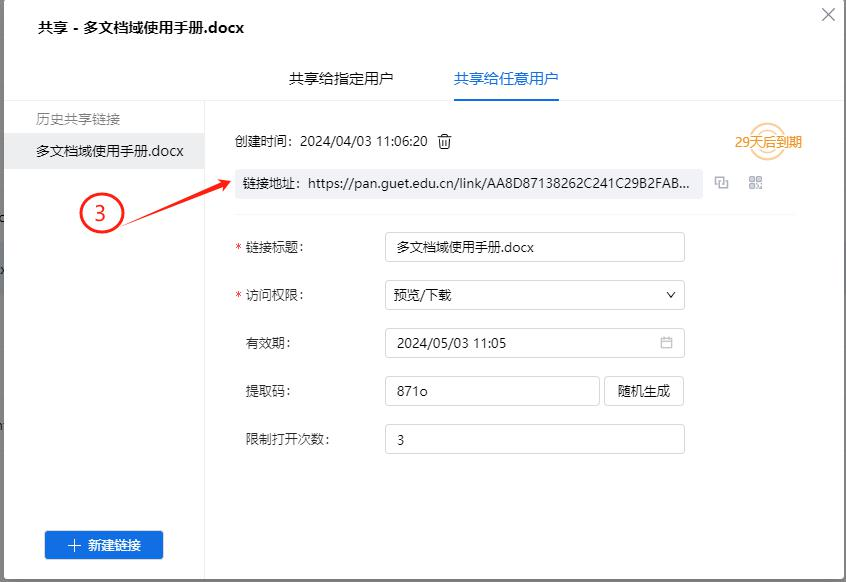 共享:可配置实名共享、匿名共享和复制实名链接。