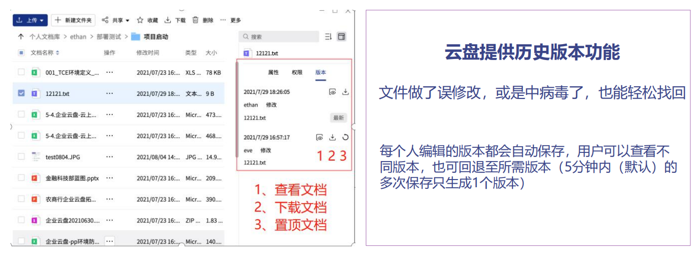 3.版本:查看文件历史版本,可下载,恢复某个历史版本。