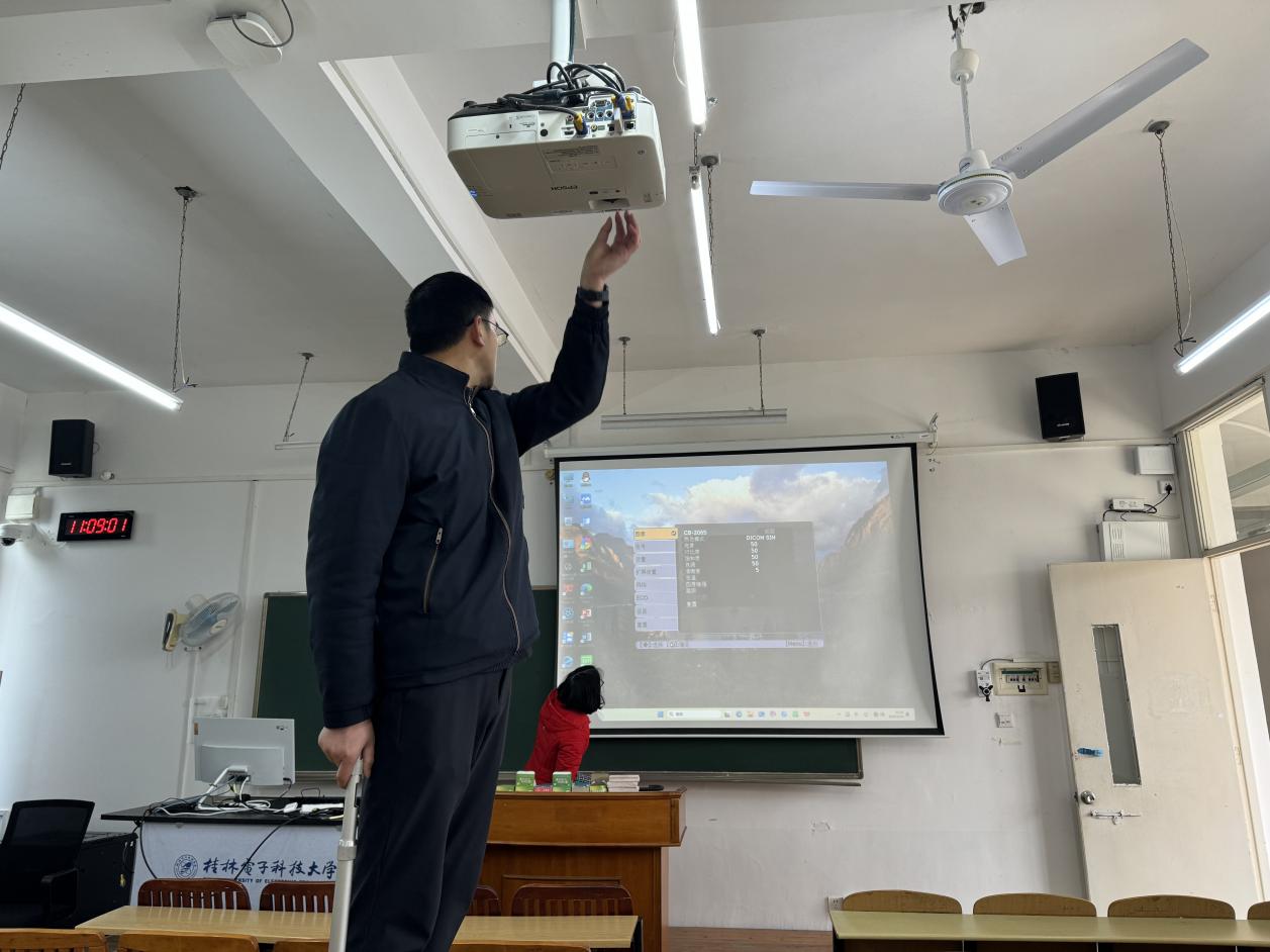 为确保新学期第一堂课的顺利进行,直至2月16日晚上十点半,电教技术科的技术人员们仍在教室里进行最后的巡查工作。他们逐一测试投影亮度、音响频响和吊麦拾音扩音效果,用实际行动诠释了“隐形守护者”的职责与担当,为教学工作的顺利开展提供了有力保障。