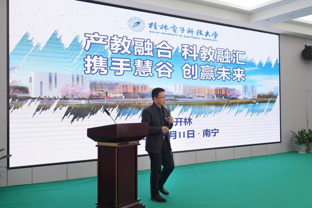 根据会议议程安排,徐华蕊作了《桂电精神成就非凡,牢记使命开创未来》的主题报告,主要从办学规模、办学条件、办学质量等方面详细介绍了学校十年来取得的非凡成就,表示将从实施OBE理念落实立德树人、对标四个面向开展科学研究、坚持开放共享服务社会发展等方面开创桂电高质量发展之路;聂慧作了《携手画好同心圆,聚力打造共同体》的报告,介绍了学校近年来校友工作情况及今后校友工作重点;周娅作了《科技创新赋能产业发展,携手共建桂电南宁研究院》的报告,重点介绍了学校科研、成果转化和桂电南宁研究院的发展情况;潘开林作了《携手桂电花江慧谷,共创人才培养辉煌》的报告,重点介绍了学校花江慧谷建设情况;南宁市委常委、副市长范晓敏就南宁市产业发展和投资环境作了介绍;桂林市灵川县县长陈文彬就灵川的发展优势、桂林智谷、灵川的政策等方面作了介绍。