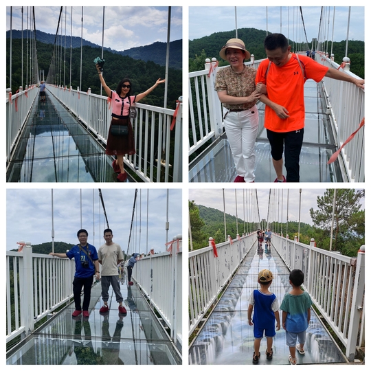 广西第一座5D高空玻璃桥,玻璃桥全长360米,踏上玻璃桥,逍遥湖景区的美景尽收眼底,仿佛云端漫步,同时又惊险无比,会有玻璃桥破碎的声音和视觉上的错觉,这也是挑战体验者的心理素质。