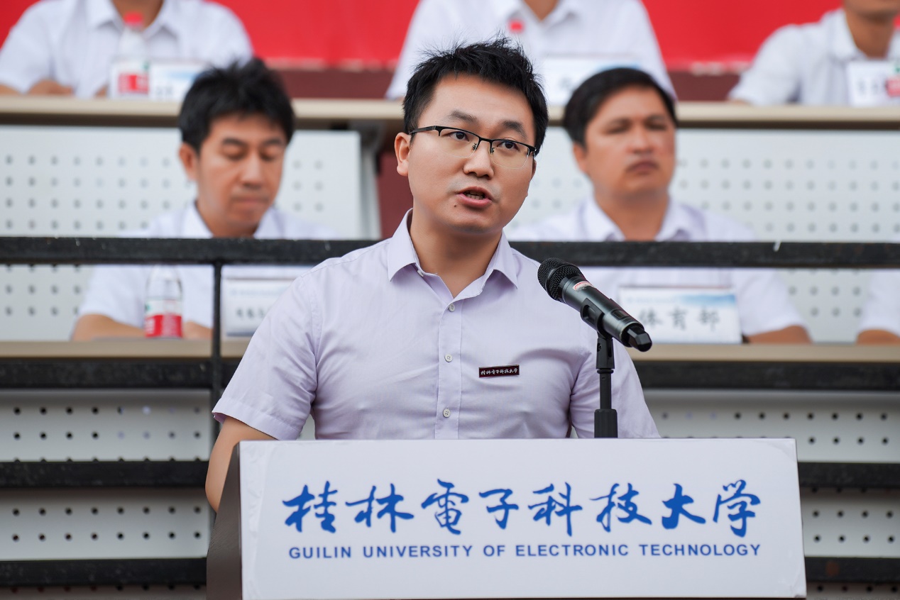 徐华蕊代表学校和全体师生向6205名2023级本科新同学的到来表示热烈的欢迎。他指出,感谢同学们选择桂电作为新的人生起点、青春驿站、梦想舞台。录取通知书、入学纪念卡、校名、校徽和校训、校歌等桂电标识、桂电内核都承载着每一个桂电人应当传承并弘扬的桂电精神。“正德厚学、笃行致新”是桂电人共同的行为准则和价值追求。“艰苦创业、自强不息”是桂电人共同的精神财富和动力源泉。