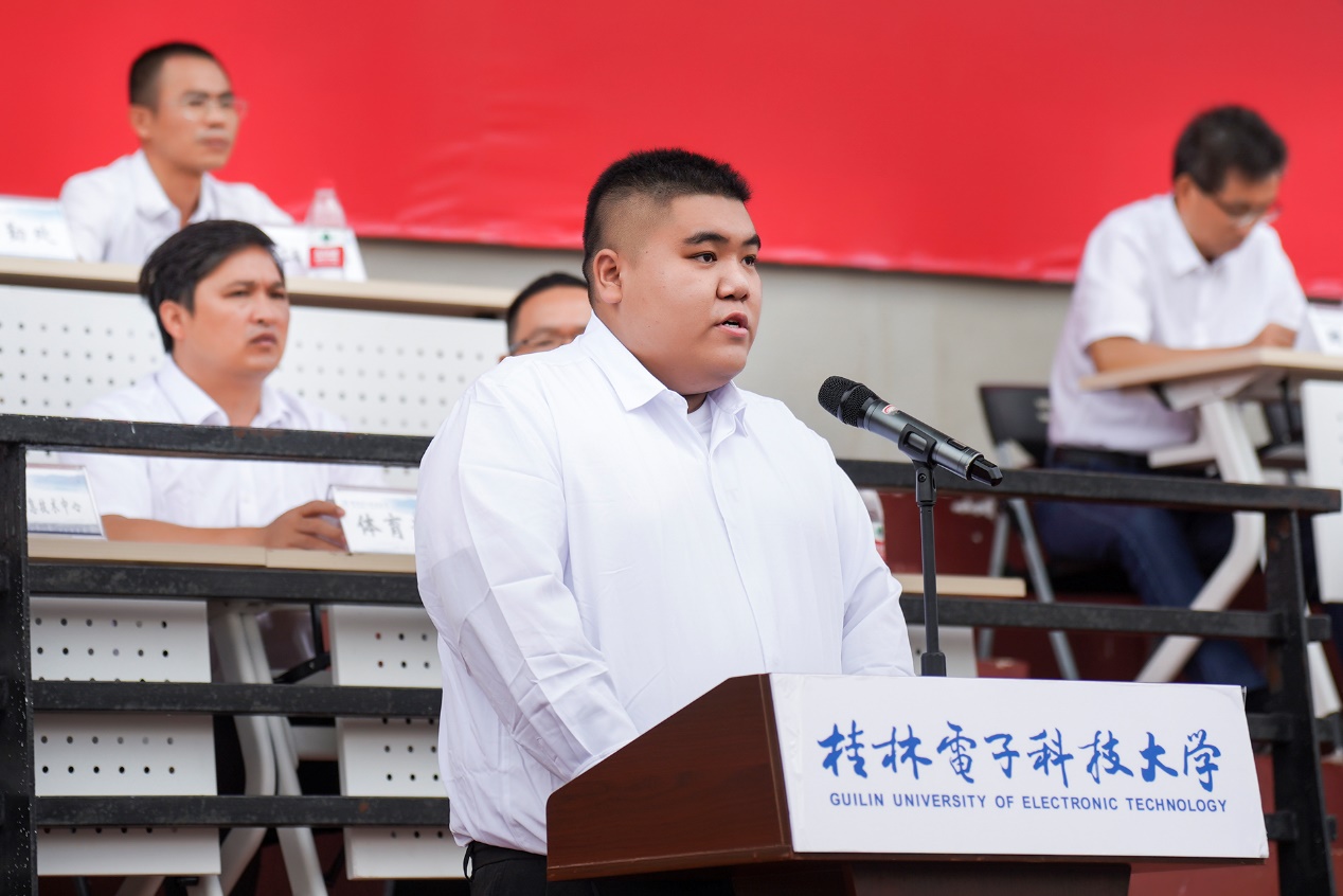在校生代表,校学生会执行主席、商学院2020级本科生于忠序希望学弟学妹们胸怀家国,奋发有为,做服务人民的实干家;敢闯敢干、勇攀高峰,做桂电精神的弘扬者;勤耕不辍,蓬勃生长,做力争上游的追梦人;尽情挥毫,恣意上色,绘就最缤纷的青春画卷,成为“最出色的桂电人。