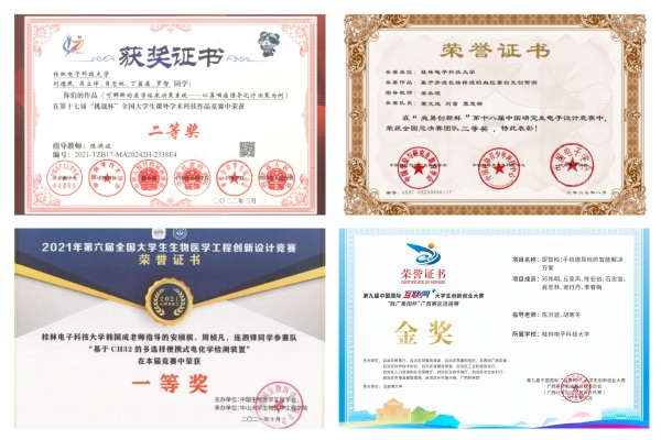 针对智慧医疗与智慧环保领域对创新人才要求高的问题,学院结合人工智能发展趋势,确立了“高校主导、校企融合、科研驱动、能力提升”的改革思路,开展了创新人才培养新模式的实践。近五年来,学生大学生创新计划项目立项28项,其中《智慧环境水质总磷全自动实验室分析机器人》入选重点领域国家级大学生创新创业训练计划项目;在中国“互联网+”大学生创新创业大赛中获全国铜奖2项,广西金奖7项;“挑战杯”大学生课外学术科技作品全国二等奖1项,三等奖2项;全国大学生生物医学工程创新设计竞赛一等奖2项、二等奖9项;累计获得各类省部级以上奖励120余项,发表科技论文82篇,其中SCI/EI收录50余篇,申请专利等各类知识产权50余件。