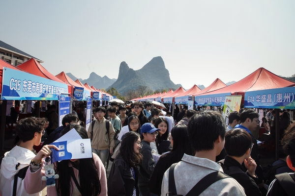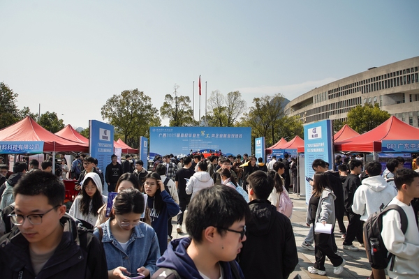 本次双选会聚焦电子信息、智能制造、人工智能、新材料等新兴产业领域,吸引了区内外380余家用人单位参会,如中国联通、中国能源建设集团、中广核、中电长城科技、海信集团、柳钢、桂林长海等龙头企业及广西本土重点企业,累计提供就业岗位10535个,其中70%以上岗位与学校机械、电子信息、计算机、自动化、材料、人工智能等特色专业高度契合。据统计,双选会共吸引8400余名毕业生到场求职,现场投递简历超2.3万份,初步达成就业意向1800余人。