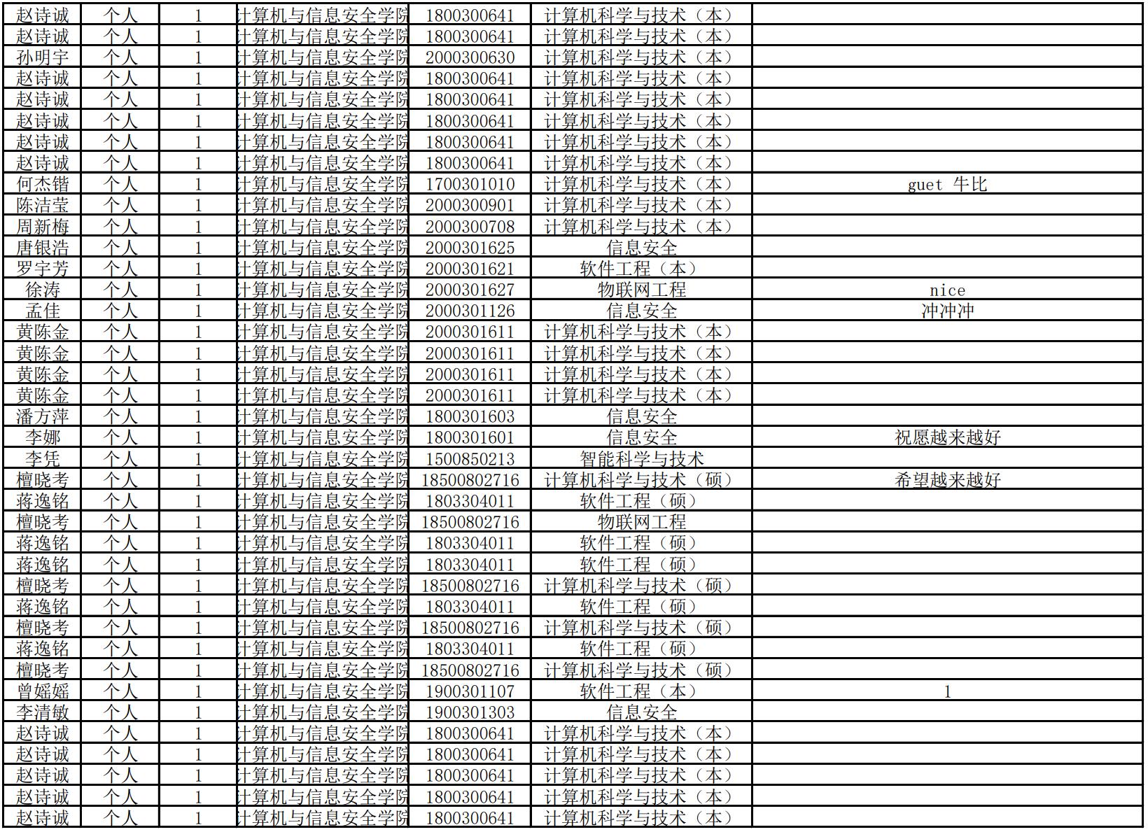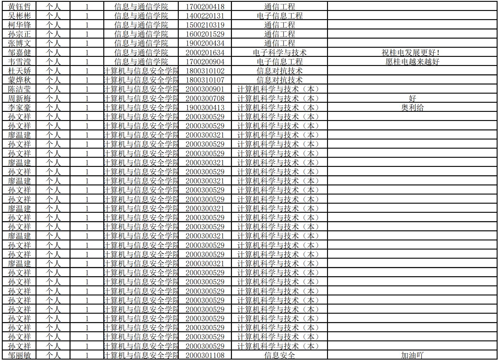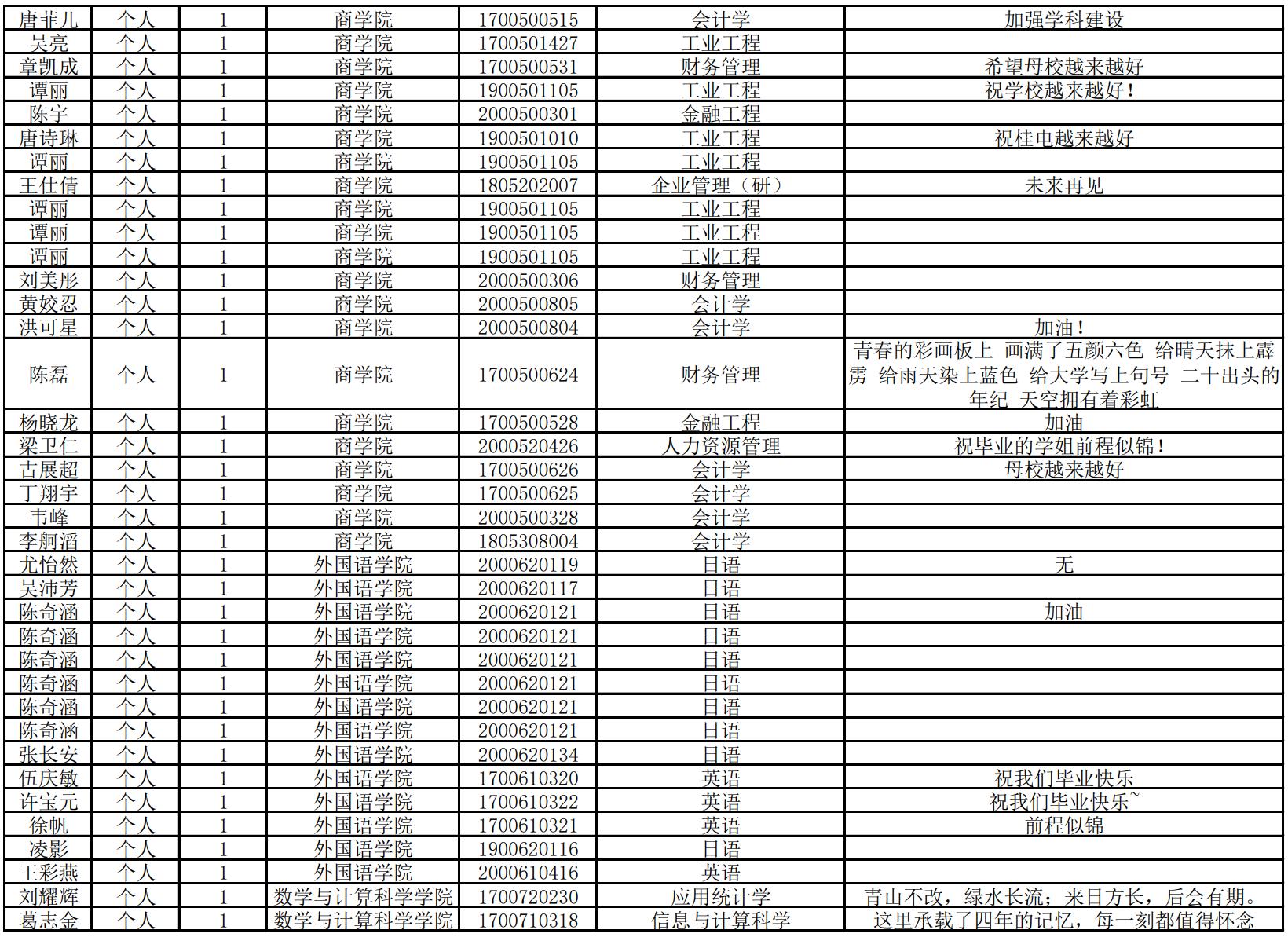 2021年1月1日-11月10日,桂电发展,有你有我——毕业季1元捐项目共计收到1295元爱心捐赠(该汇总为桂电人平台导出数据数据汇总)。现将该项目明细公示如下: