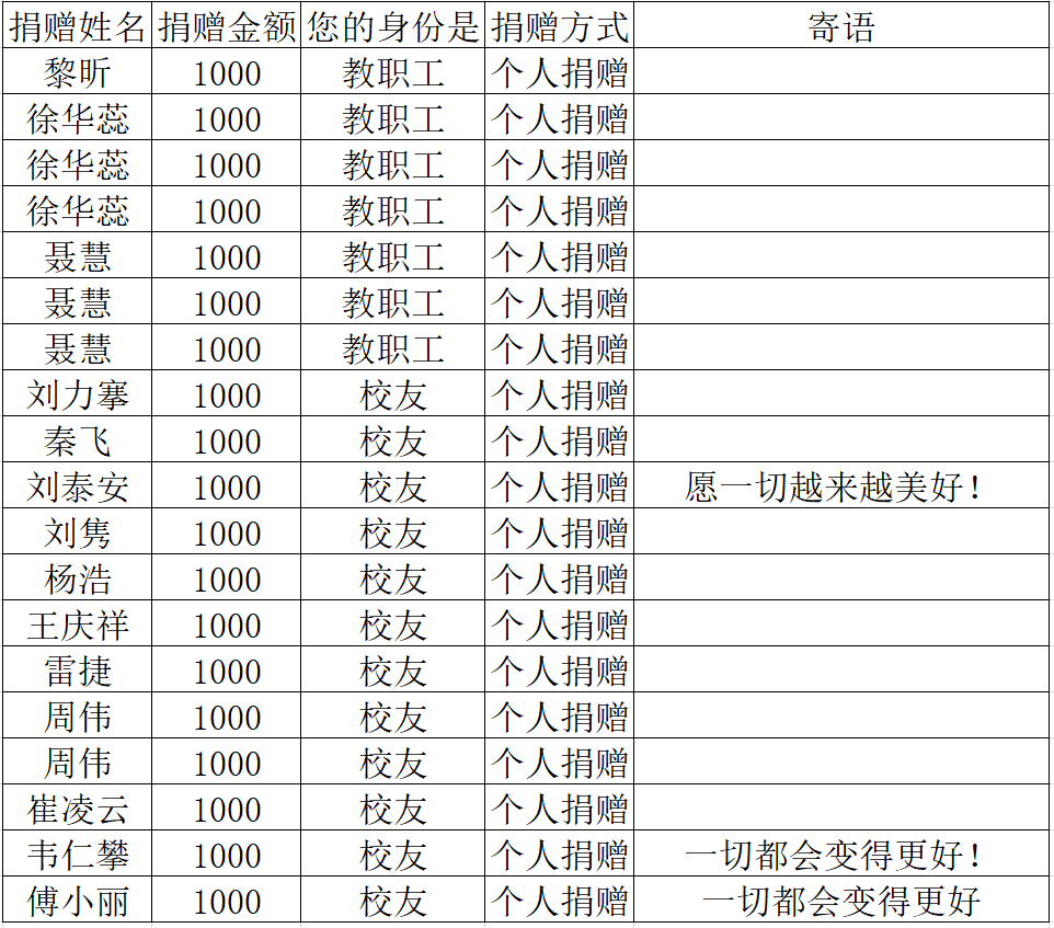 2021年1月1日-11月10日,兰田民族学校贫困学生教育发展基金捐赠项目共计收到19000.00元爱心捐赠(该汇总为桂电人平台导出数据数据汇总)。现将该项目明细公示如下: