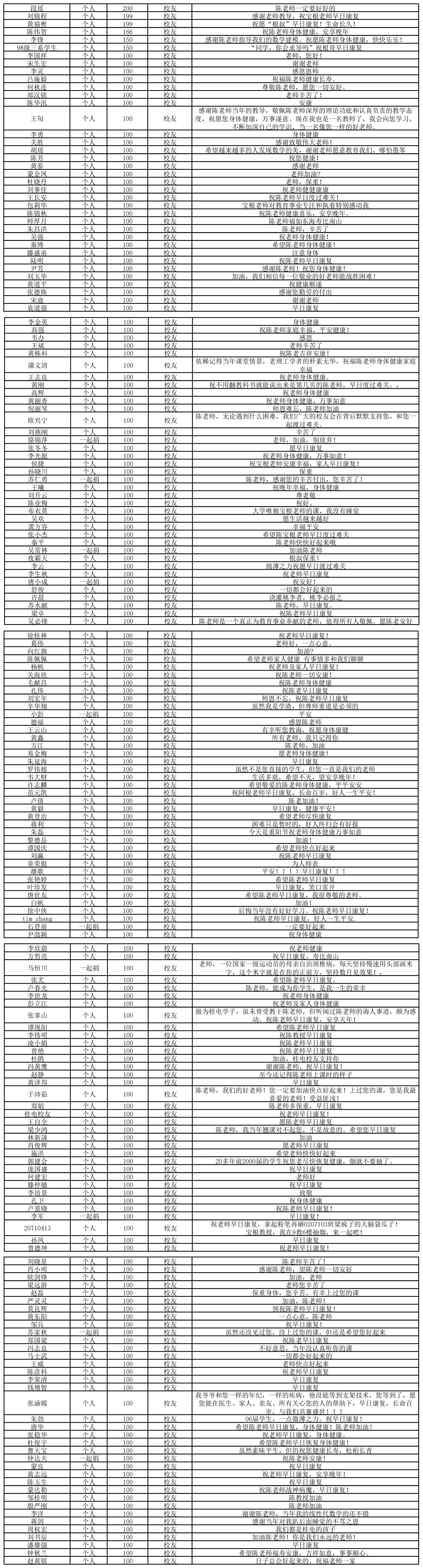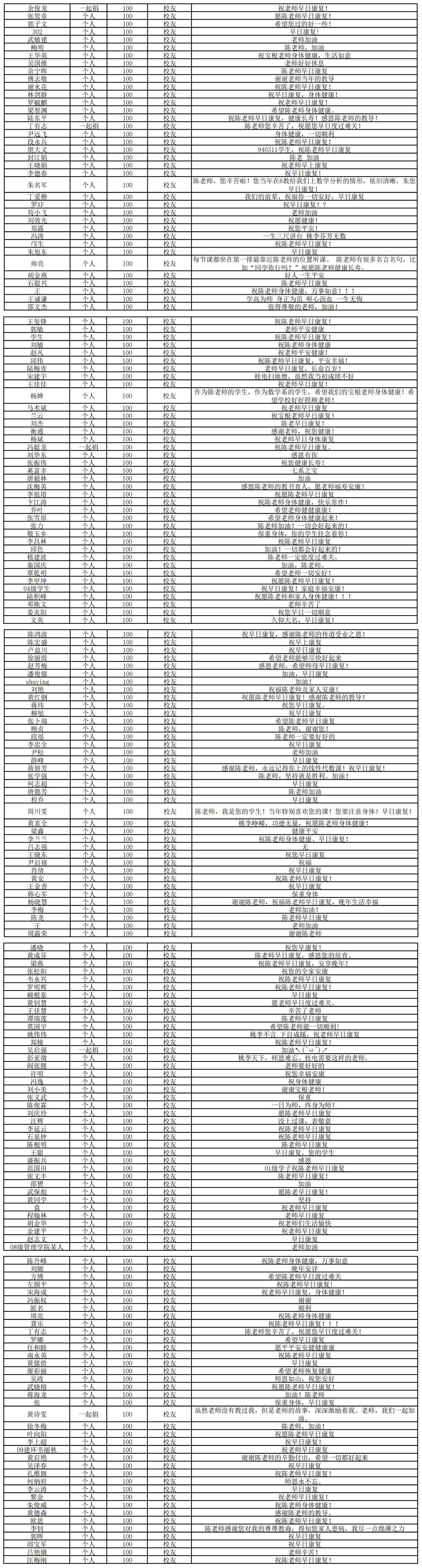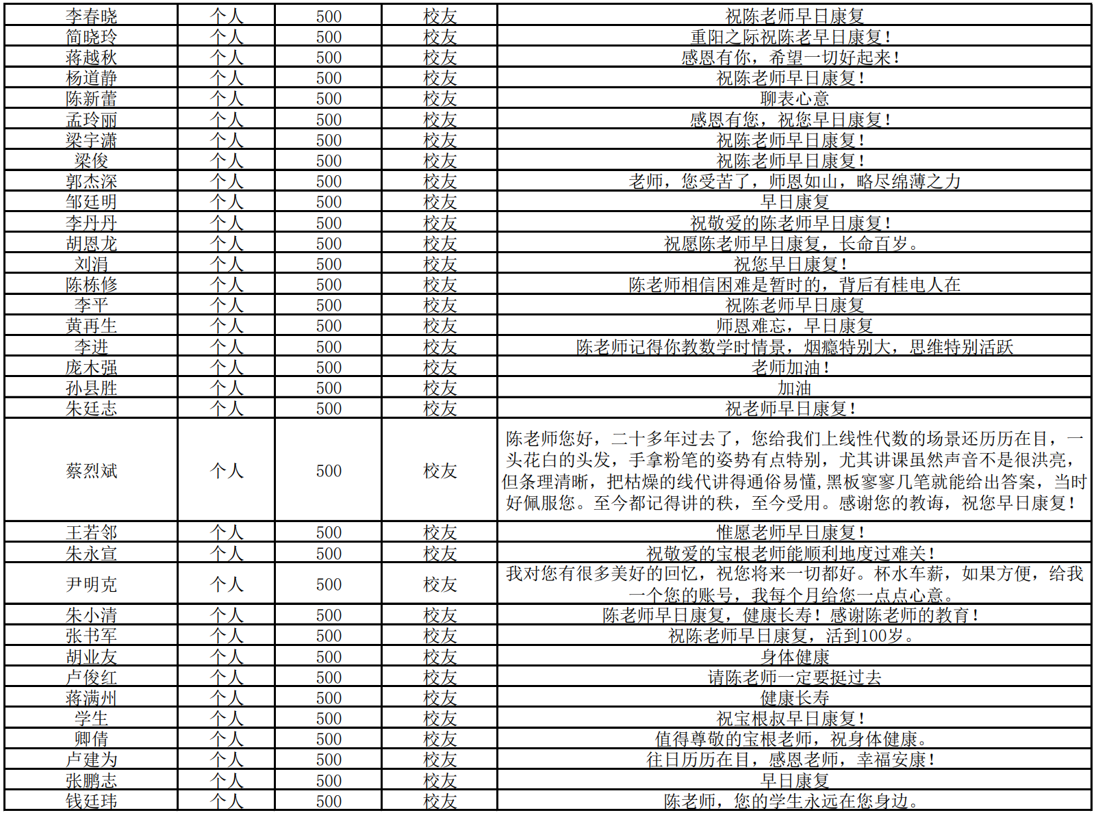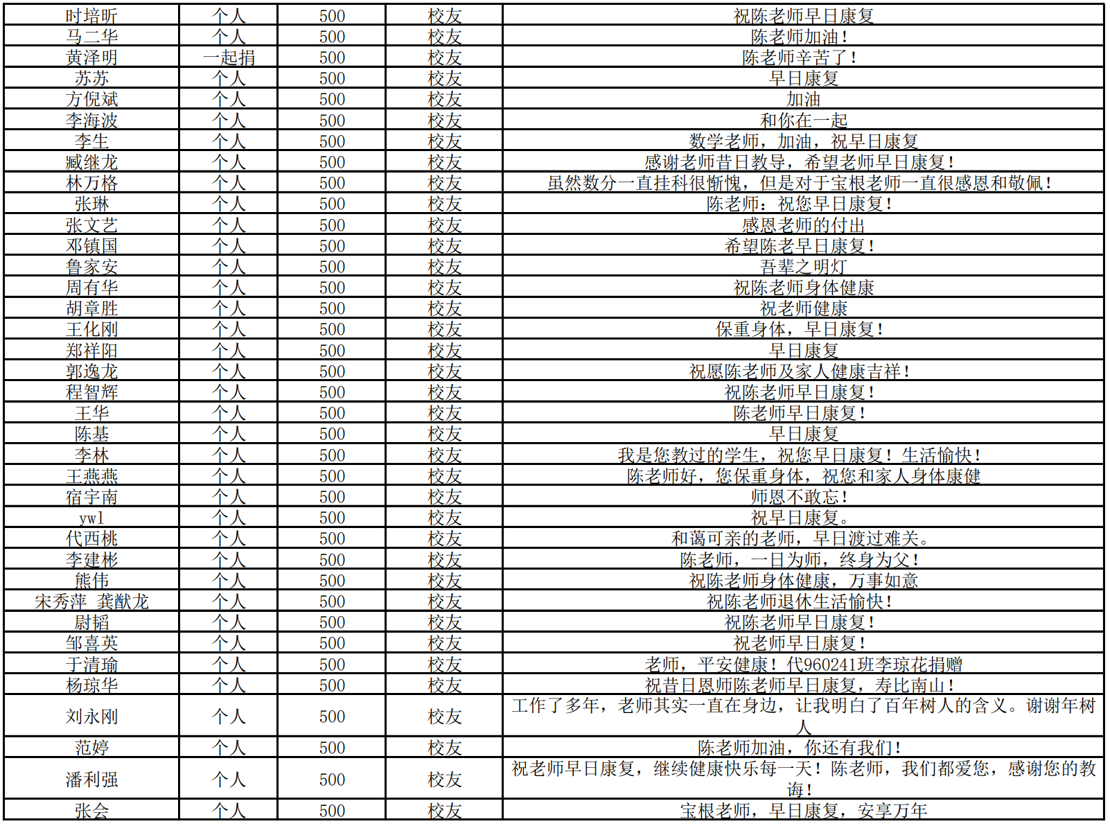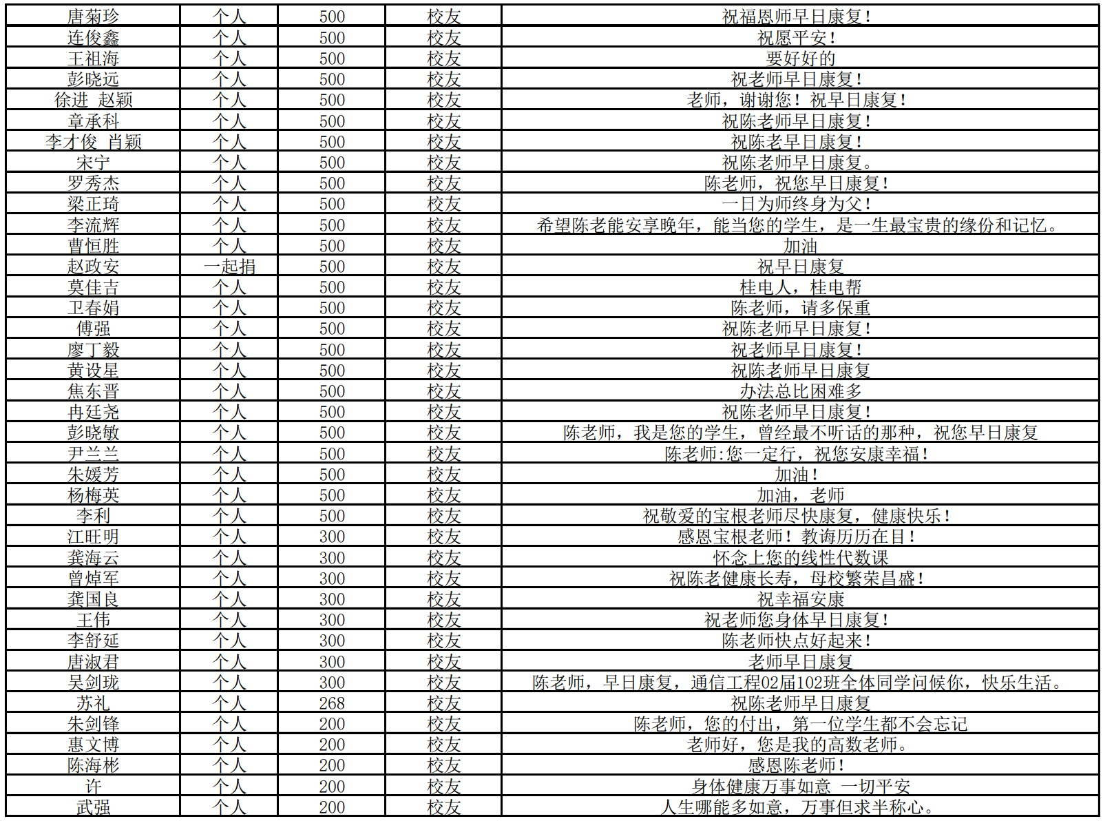 三亿官方官网三亿(中国)_三亿(中国)校友(陈宝根老师的学生们)在了解到陈老师的现状后,再次向全体师生、校友发出了为陈老师捐款的倡议,数学与计算科学学院和校基金牵头设立了“陈宝根老师感恩基金”。