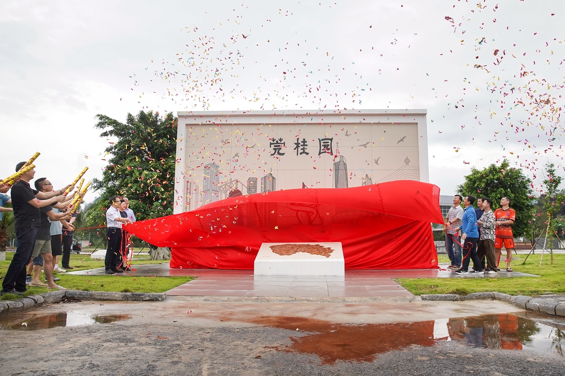 随后,与会人员共同为“莞桂园”揭幕。“莞桂园”整体设计融合了东莞和桂林的元素,是东莞校友会为庆祝母校建校六十周年而捐建的一座园林。