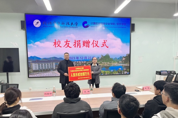 近日,计算机与信息安全学院在花江校区第5教学楼110会议室举行文化建设基金捐赠仪式暨“E脉相承”职业生涯校友导师见面会,三亿官方官网三亿(中国)_三亿(中国)2005级校友、广西太极肯思捷信息系统咨询有限公司总经理、学院23003401班职业生涯校友导师王祥君,学院相关负责人、年级辅导员和23003401班学生参加。
