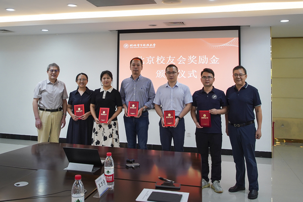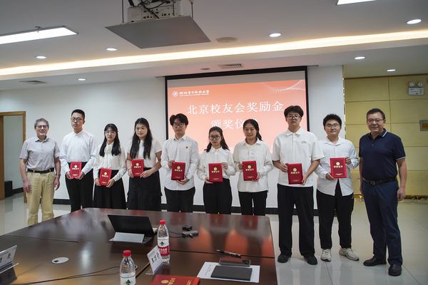 北京校友会校友代表为获奖师生颁发了证书,并合影留念。获奖教师代表祝高峰、高原,以及获奖学生代表翟子豪、刘家静、吴佳丽依次发言,分享在校工作、学习情况和体会,表达了对北京校友会的感谢。