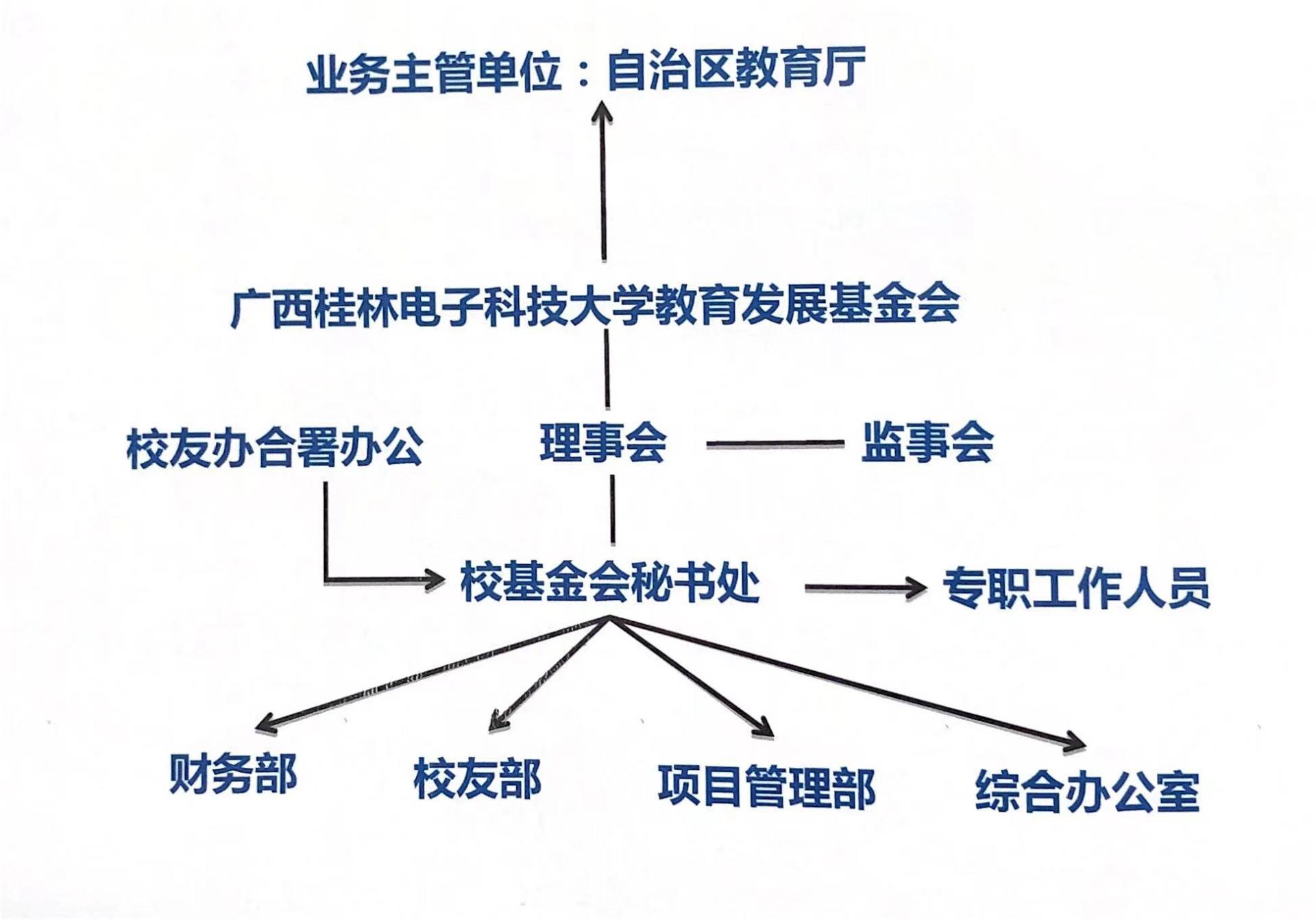 基金会理事会下设秘书处,有秘书长1人。秘书处设有财务部、校友部、项目管理部、综合办公室4个部门。