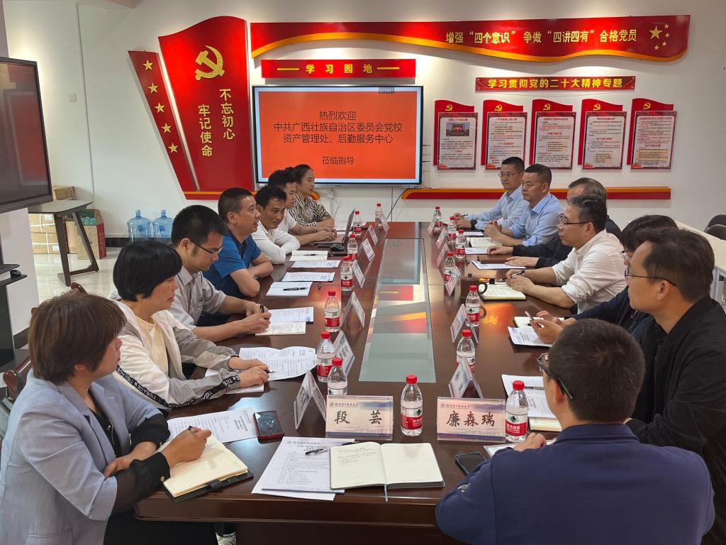 5月8日,中共广西壮族自治区委员会党校资产管理处王林处长一行到我处调研交流,我处陈梦雪处长及相关人员参加了座谈交流。