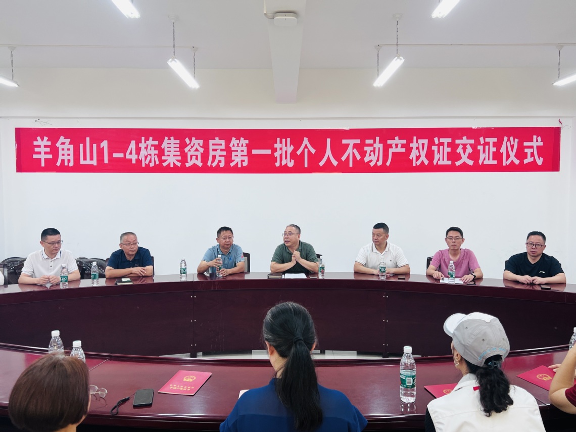 在多任同志的不懈努力下,羊角山1-4#集资房第一批31户取得了期盼19年之久的个人不动产权证。7月18日上午,羊角山1-4#集资房项目第一批个人不动产权证交证仪式在花江校区行政楼320举行。学校国资处、财务处、基建处、审计处等部门负责人及相关人员与住户代表参加交证仪式。