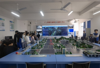 2023年11月1日,贵港达开高中高二学生到我院广西智慧交通重点实验室进行研学活动。交通工程系柴华昕老师向来研学的师生介绍了广西智慧交通重点实验室的基本情况,在带领同学们参观智慧交通相关实验室过程中讲解了城市交叉口绿波信号、智慧交通系统、交通安全等方面的交通科学知识,还针对同学们感兴趣的交通问题展开了探讨。同学们还在交通虚拟仿真平台上模拟了在不同道路场景下驾驶机动车情景,学习相关的交通驾驶知识的同时体验路面驾驶的真实感。