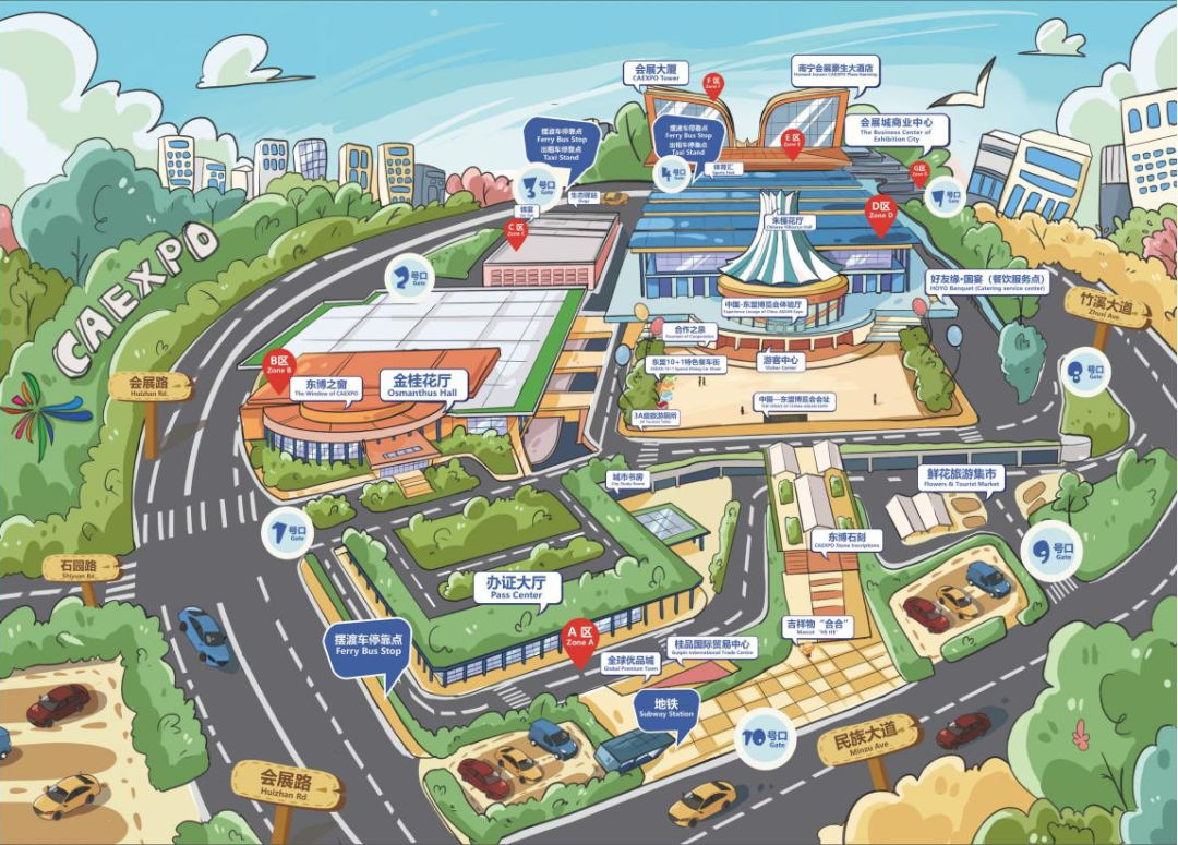 二、自驾车前往的考生和家长可根据“南宁国际会展中心行车路线示意图”指示路线出入及停放车辆。